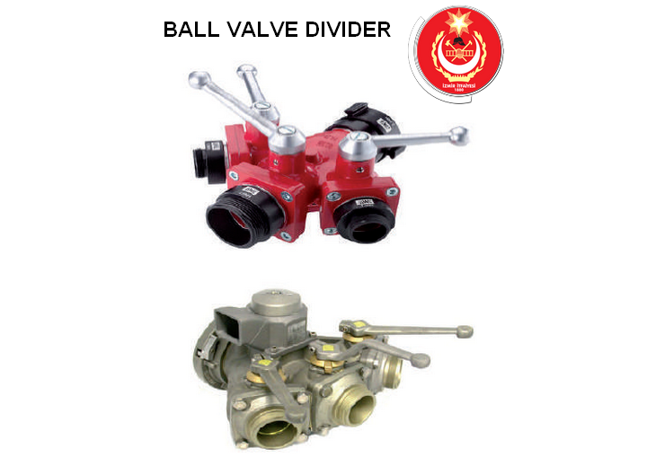 Dividers are used for distributing the extinguishing medium from one feed line over several hose lines, or in special cases for collecting it in the reverse direction. Each hose line can be shut off individually by means of a stop valve.