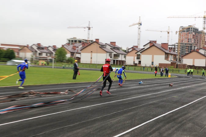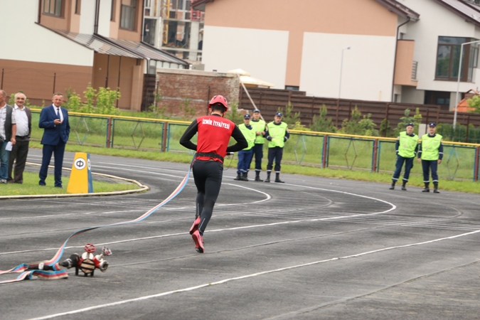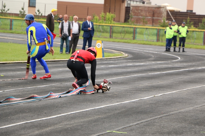 Connects the hose on the right hand to the hose replicator at the distance of 45 meters.   Connects the nozzle in the belt to the hose on the left hand and runs with hose to the finish.