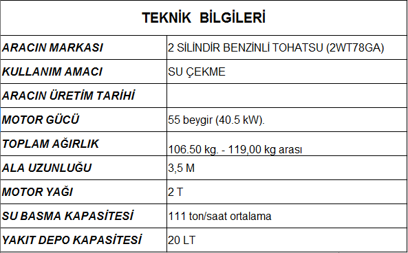 Tohatsu Motopomp Tohatsu Motopomp Su baskınlarında su tahliye etmek için kullanılmaktadır. Envanterimizde 9 adet bulunmaktadır.