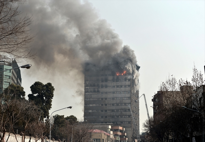 İran'ın başkenti Tahran'da 17 katlı bir iş yerinde yangın çıktı. Çıkan yangın sonucu boşaltılan binaya 200'e yakın itfaiyeci sevkedildi. Bina çöktüğü sırada içeride bulunan 30'dan fazla itfaiye eri görev şehidi oldu, 70'den fazla da yaralı olduğu biliniyor.