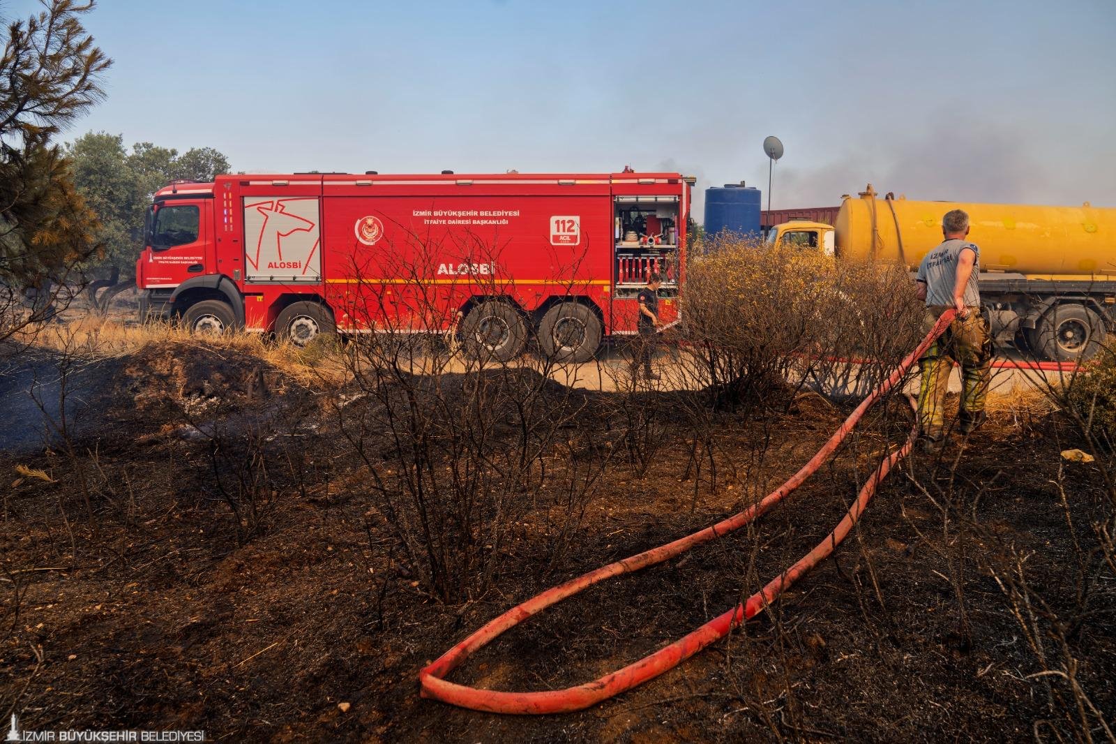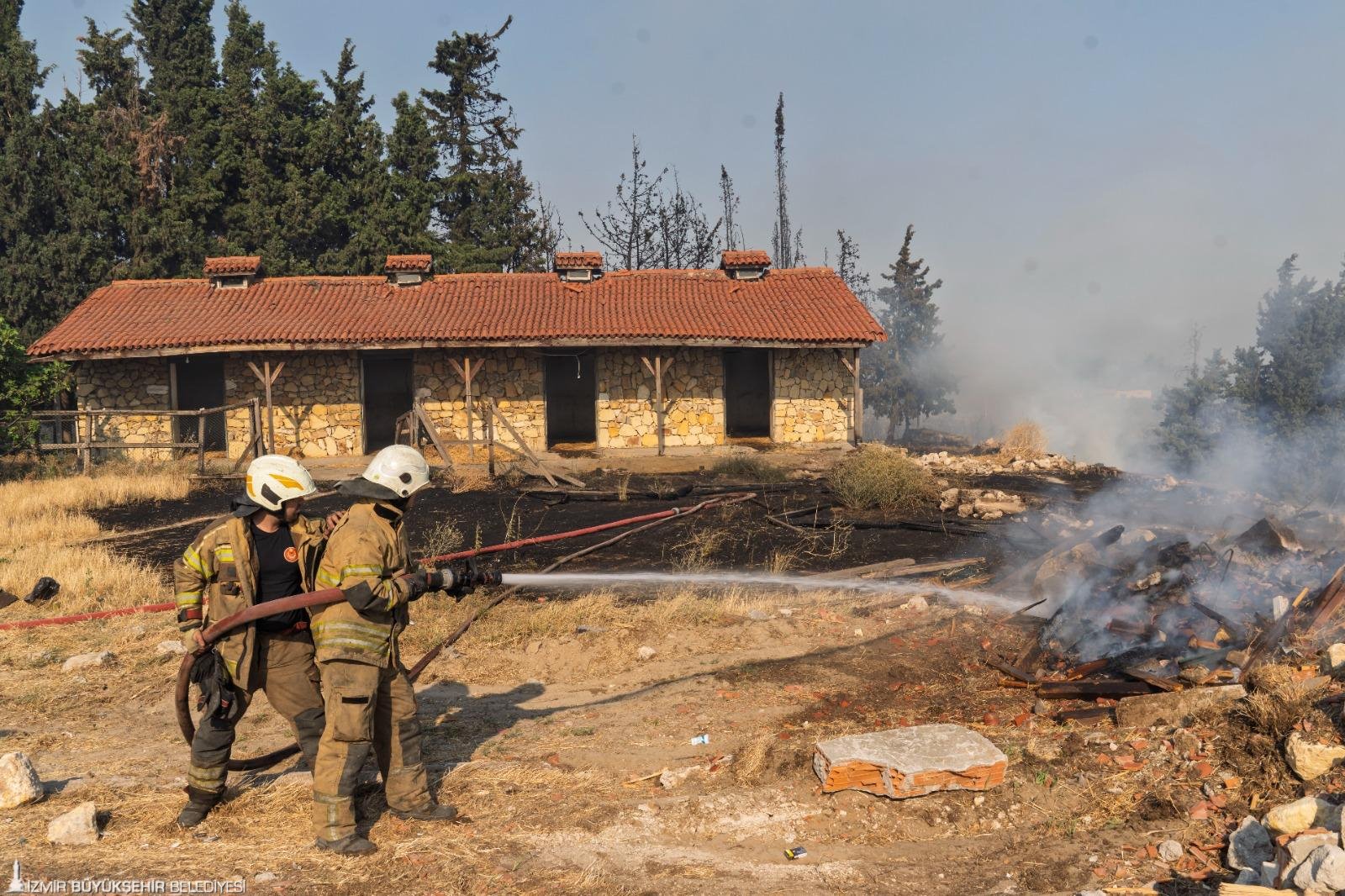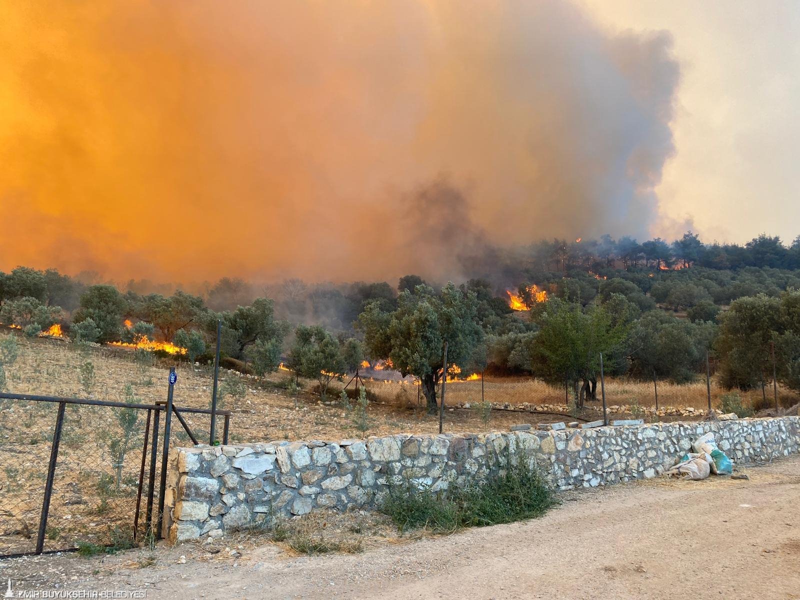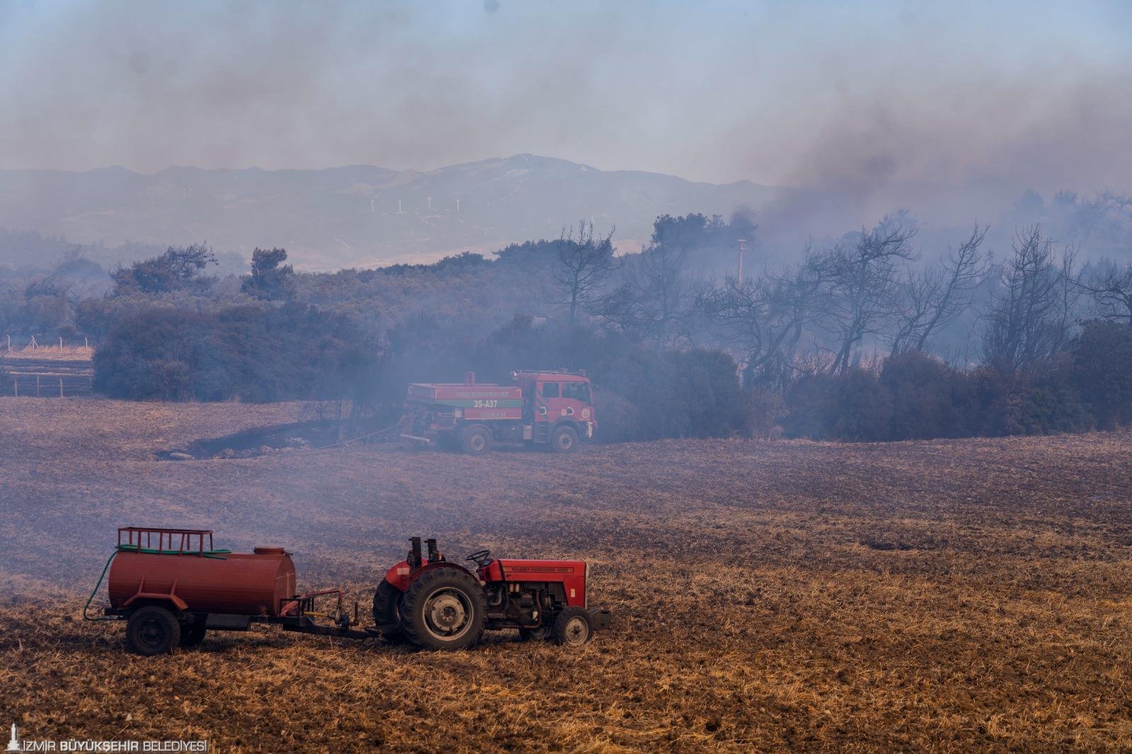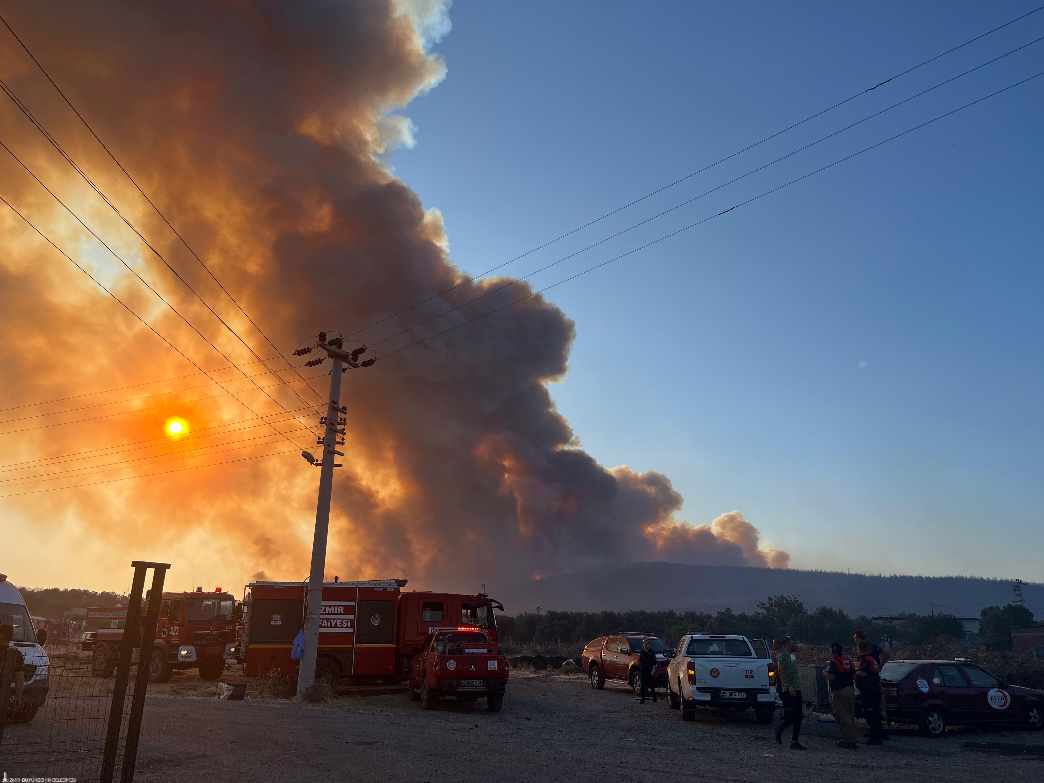 İzmir Büyükşehir Belediyesi İtfaiye Dairesi Başkanlığı ile İzmir Orman Bölge Müdürlüğü ekipleri, bugün öğle saatlerinde Foça ile Aliağa'da başlayan orman yangınlarını kontrol altına almak için seferber oldu. Çalışmalara, İZSU Genel Müdürlüğü, AFAD, jandarma, ilçe belediyelerinin yanı sıra bölge halkı da traktörlerle destek verdi. Alevlerin tehdit ettiği yerleşim yerlerinde, önlemler üst seviyeye çıkarıldı. Yangının etkilediği Aliağa Bozköy civarında, anızların ve kuru otların tutuşması nedeniyle, hobi bahçeleri ve bazı çiftlik evleri zarar gördü.