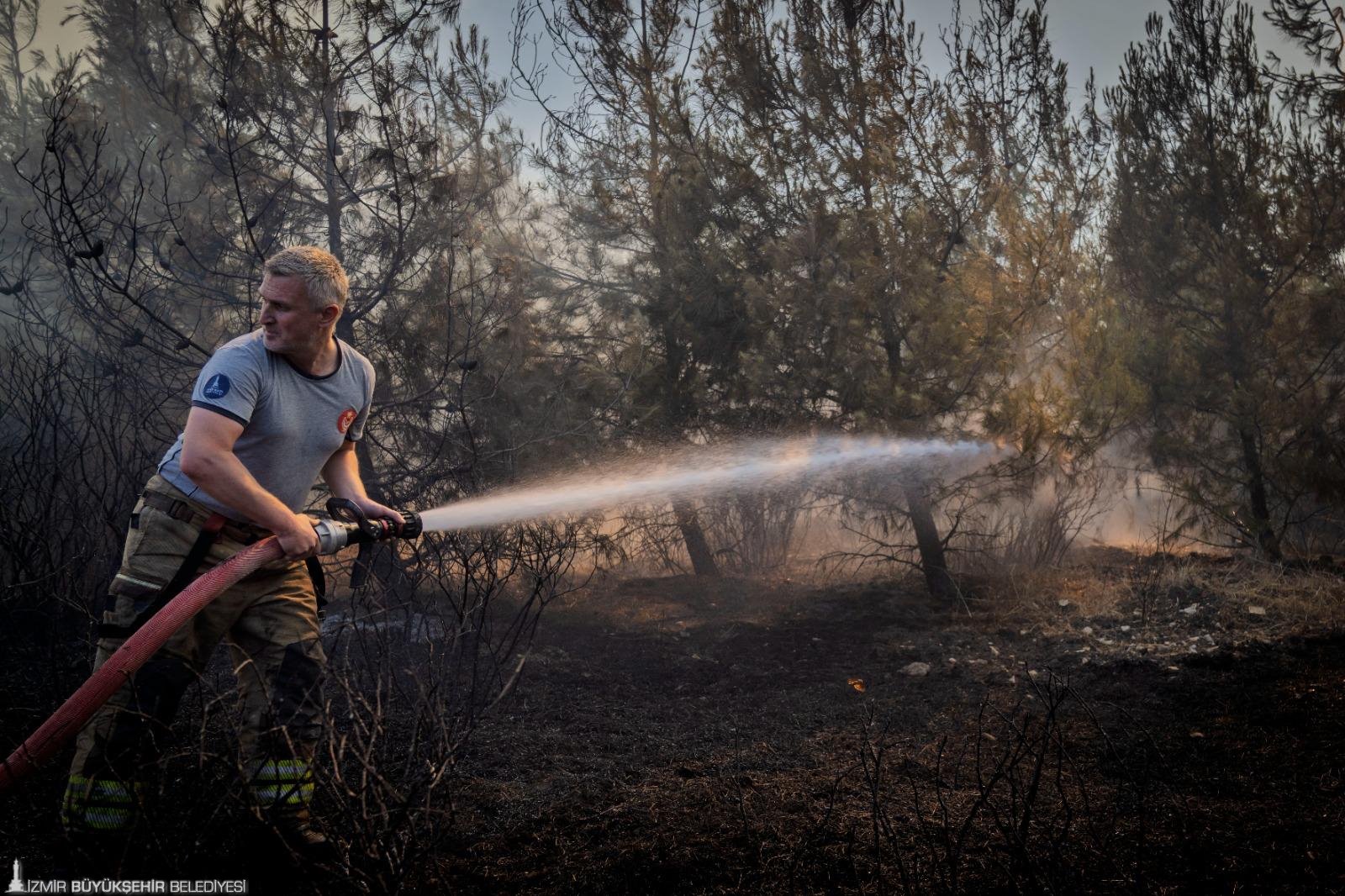 İzmir Büyükşehir Belediyesi İtfaiye Dairesi Başkanı Yaşar Korkmaz, “Yangınlar, ormanlık alanda eş zamanlı başladı. Bozköy'de çıkan yangın, yerleşim alanlarında hobi bahçeleri ve geniş çiftlikler gibi yerleşim alanlarını etkiledi. Rüzgarın da etkisi ile yangın hızla yayıldı. Bu durum çalışmalarımızı zorlaştırdı. Bir yerde alevleri kontrol altına almak için çalışırken, başka bir yerde yangın çıkıyor. Sahada 20 itfaiye arazözü, 20 iş makinesi, tankerler, 22 ekip ve 150 personelle çalışmalarımız sürüyor. Yaptığımız çalışmalar sonucunda yangın hızını kısmen yitirdi. Şu ana kadar yaralı veya ölü bilgisi bize ulaşmadı” dedi.