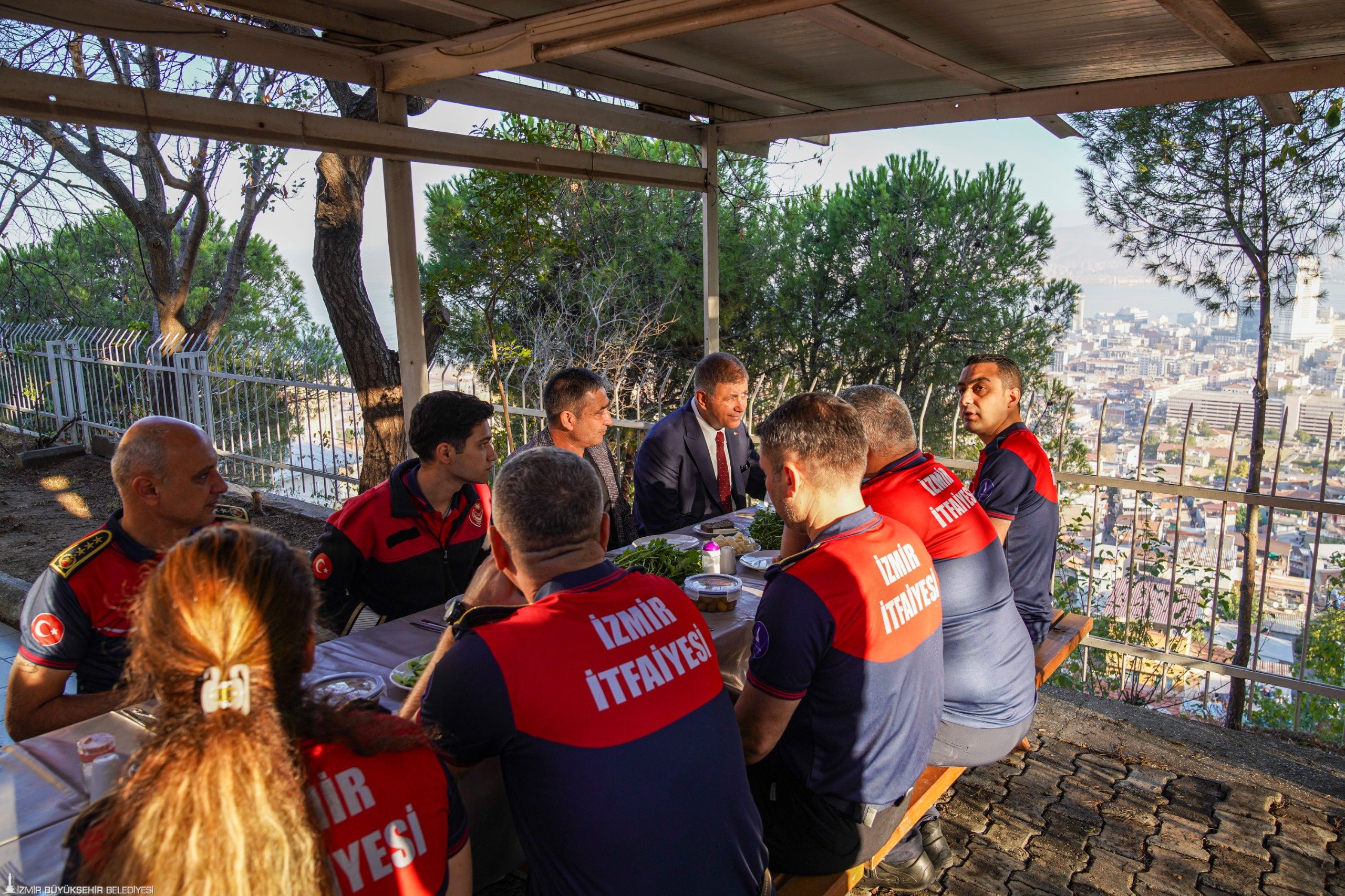 İzmir Büyükşehir Belediye Başkanı Dr. Cemil Tugay, İtfaiye Teşkilatı’nın kuruluşunun 311, teşkilatın belediyelere devredilişinin 102’nci yıl dönümü nedeniyle Konak Kadifekale İtfaiye Grubu’nu ziyaret etti. Başkan Tugay’ı burada İzmir Büyükşehir Belediyesi Genel Sekreter Yardımcısı İsmail Mutaf, İzmir Büyükşehir Belediyesi İtfaiye Dairesi Başkanı Yaşar Korkmaz, itfaiye şube müdürleri ile Kadikefale İtfaiye Grubu’nda görevli itfaiye personeli karşıladı. Tugay, ateş savaşçıları ile kahvaltı yaptı, sohbet etti.