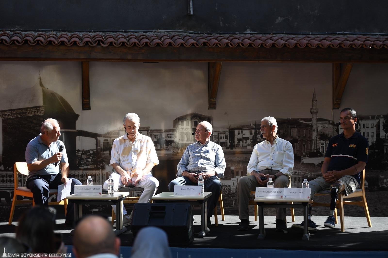 Konuşmaların ardından moderatörlüğünü Halil Dinç’in üstlendiği söyleşide İzmir İtfaiyesi’nin çınarları deneyimlerini katılımcılarla paylaştı. 81 yaşındaki Turan Toptop, 24 yıl boyunca İzmir Büyükşehir Belediyesi İtfaiye Dairesi Başkanlığı çatısı altında çalıştığını söyledi. Toptop, “Burada genç meslektaşlarımla buluştuğum için çok mutlu oldum. Herkese teşekkür ediyorum. Gençler yangın sırasında amirlerinin emirlerini iyi dinlemeli. Olay yerine giderken tedbirli olsunlar. Ben mesleğimi çok özledim. Bu binada çok anılarımız var” dedi.