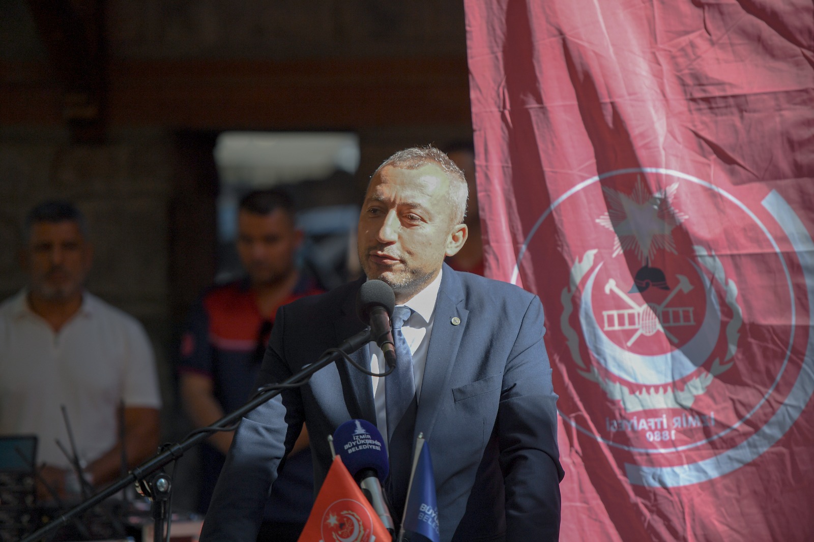 İzmir Büyükşehir Belediyesi Genel Sekreter Yardımcısı İsmail Mutaf, mühendis olduğunu ancak ateş savaşçılarının sahada verdiği mücadeleye büyük bir hayranlıkla tanık olduğunu söyledi. Mutaf, “Sizin sahadaki emeklerinizi, mücadelenizi gördükçe, mühendislik kadar itfaiyeci olma isteği içimde filizlendi. Gerçekten önemli bir görev yapıyorsunuz. Yurttaşların can ve mal güvenliğini sağlamak için gözü kara şekilde görev yapıyorsunuz. Emeklerinizin karşılığı ödenmez. Bu bayrağı geçmişten taşıyarak bugüne kadar getiren itfaiyeci ağabeylerimize çok teşekkür ediyorum. Bayrağı devralacak genç arkadaşlarımız da aramızda. Bu bayrağı daha ileri taşıyacağız. 145 yıllık bir kurum. İzmir her zaman birçok konuda öncü oldu. İtfaiye teşkilatı olarak da kendi farkını gösteriyor. Elimizden geldiğince sizin sesinize kulak vereceğiz” dedi.