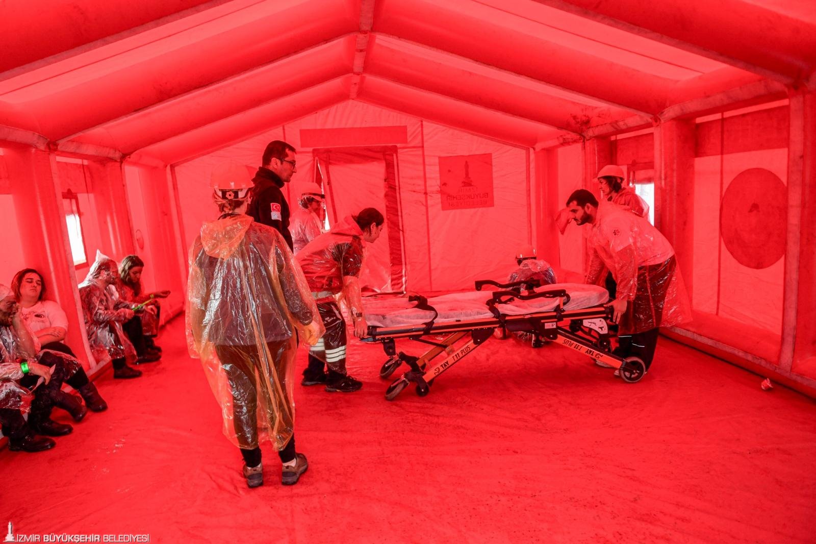 İzmir Büyükşehir Belediyesi Eşrefpaşa Hastanesi ve Türkiye Acil Tıp Derneği (TATD) öncülüğünde, İstanbul, Antalya, Bursa, Erzurum, Adana’nın da aralarında yer aldığı 20 şehirden 60 acil tıp uzmanı ve 13 eğitmen İzmir’de buluştu. 6 Şubat 2023’teki merkez üssü Kahramanmaraş olan depremlerde sahada görev alan sağlıkçılar, olası afetlerde daha donanımlı olmak, daha fazla hayat kurtarmak için bu kez tatbikatta bir araya geldi. Sağlıkçılar; İzmir Büyükşehir Belediyesi İtfaiye Dairesi Başkanlığı’nın yangınlardan doğal afetlere, arama-kurtarmadan ilkyardıma kadar birçok konuda acil durum eğitiminin verildiği Toros Yangın ve Doğal Afet Eğitim Merkezi’nde düzenlenen deprem ve yangın tatbikatına katıldı.