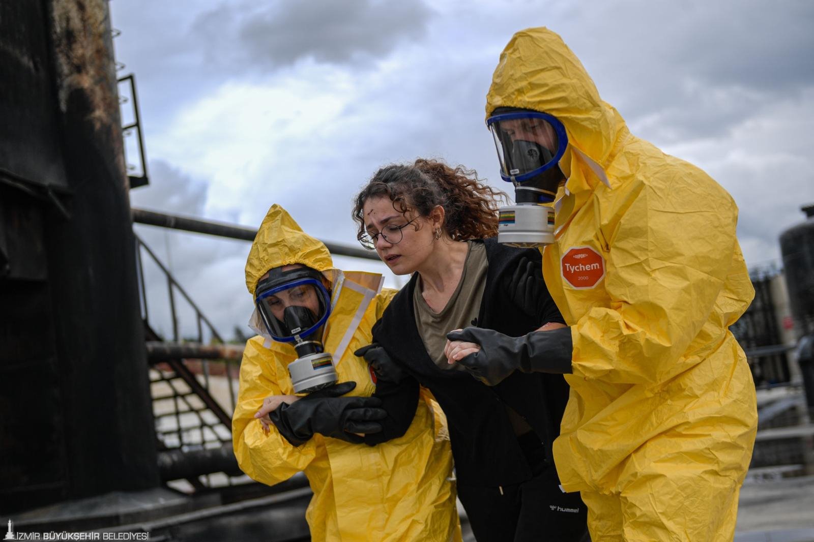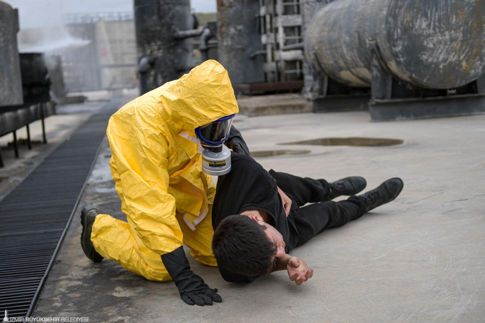 İzmir İtfaiyesi ekipleri ile düzenlenen tatbikatta, çok amaçlı kapalı alan yangın ve arama kurtarma eğitim simülasyonunda tatbikat düzenlendi. Senaryo gereği kapalı alanda çıkan yangın nedeniyle içeride birileri mahsur kaldı. Yine senaryo gereği yaralıların yardım çığlıkları yükseldi. Panik ve korkunun hakim olduğu alanda siren sesleri insan sesine karıştı. İtfaiye ekiplerinin yangına müdahalesinin ardından sağlıkçılar yaralıları alandan çıkardı.