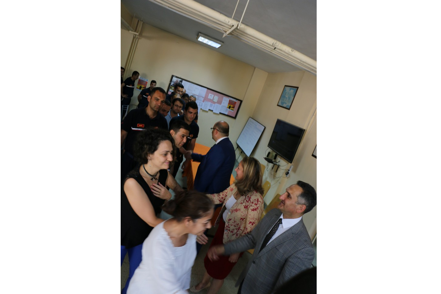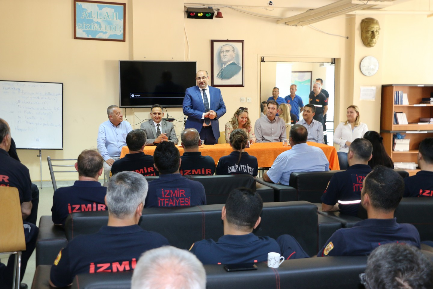 Adeta soluk almadan, gün boyu büyükşehir belediyesinin birimlerini tek tek gezerek çalışan emekçilerle bayramlaşan İzmir Büyükşehir Belediyesi Genel Sekreteri Buğra GÖKÇE, Genel Sekreter Yardımcısı V. Yıldız DEVRAN ile birlikte geldiği İzmir İtfaiyesi Yenişehir Merkez Binada, İtfaiye Dairesi Başkanı Serdar Yücel ve şube müdürleri tarafında karşılanarak personel lokaline buyur edildi. Burada itfaiye personeline hitap eden GÖKÇE, konuşmasında itfaiyenin ve itfaiyecinin öneminden, öneminin farkında olduklarından bahsederek, İzmir'e birlikte iyi hizmet edip Türkiye'ye örnek teşkil edebileceğimiz ve aydınlık bir gelecek yaratabileceğimiz gerçeğine değindi.