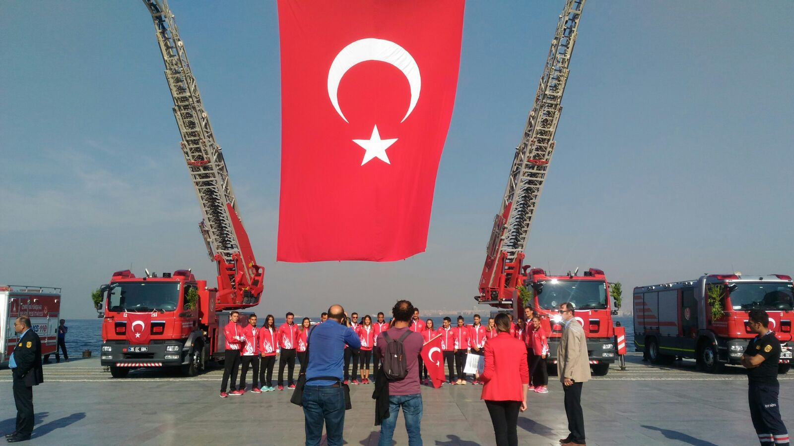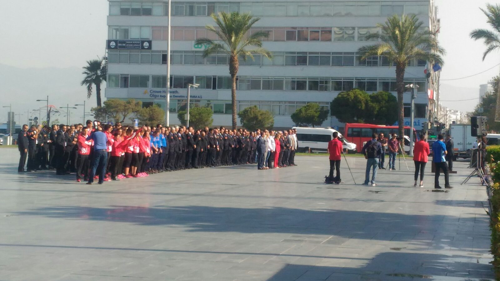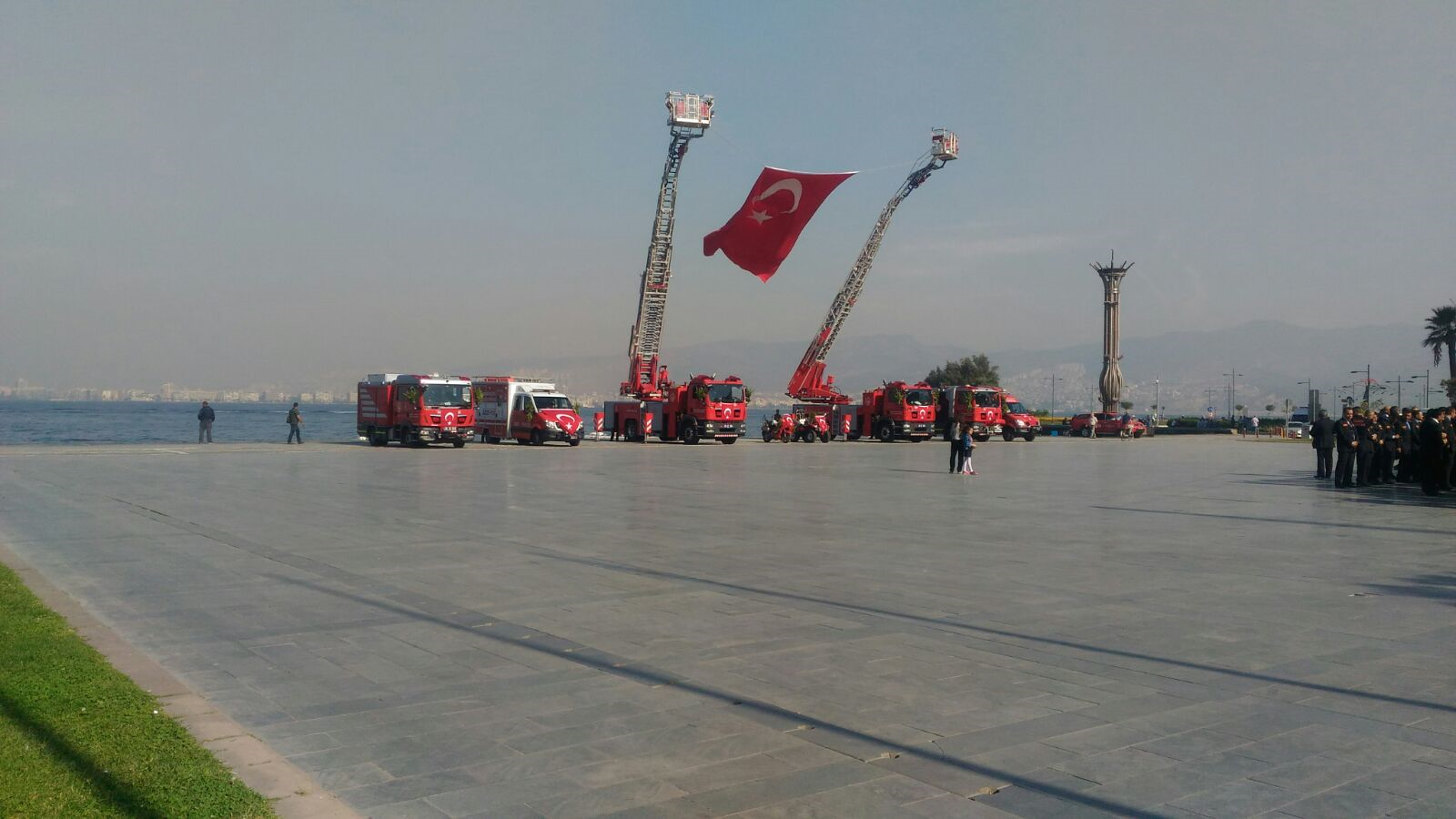 Saat 10:00'da Cumhuriyet Meydanı'nda yapılan törene Genel Sekreter Yardımcı Yıldız DEVRAN, İtfaiye Dairesi Başkanı Serdar YÜCEL, şube müdürleri, itfaiye sporları bay ve bayan takımları ile itfaiye personeli ve büyükşehir belediyesi zabıta personeli katıldı.