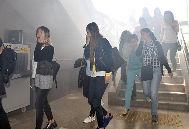 Büyük bir heyecan içinde gerçekleşen tatbikat, uzmanlardan da izleyenlerden de tam not aldı. Aksiyon filmi sahnelerini aratmayan tatbikatta her şey gerçeğine uygun yapıldı. Binada bulunan tüm personel ve ziyaretçiler, tatbikatta görevli personelin talimatlarına uyarak seri bir şekilde binayı boşaltarak İzmir Saat Kulesi tarafında bulunan toplanma alanına yönlendirildi. Yangın alarmıyla birlikte, Arama Kurtarma ve Tahliye Ekipleri tüm katları dolaşarak binada bulunan personel ve ziyaretçileri acil çıkış kapılarına yönlendirdi. Yoğun duman altında kalan, yaralanan ve merdivenlerde baygınlık geçiren 6 kişi, itfaiye ekipleri tarafından kurtarılarak AKS ekiplerince tedavi altına alındı.