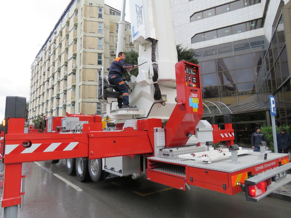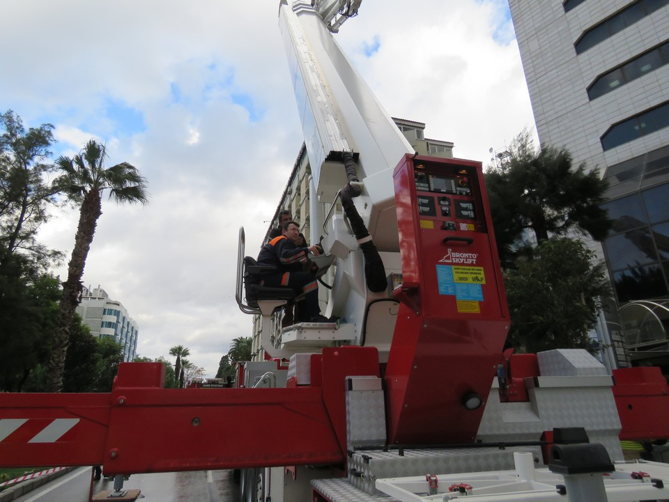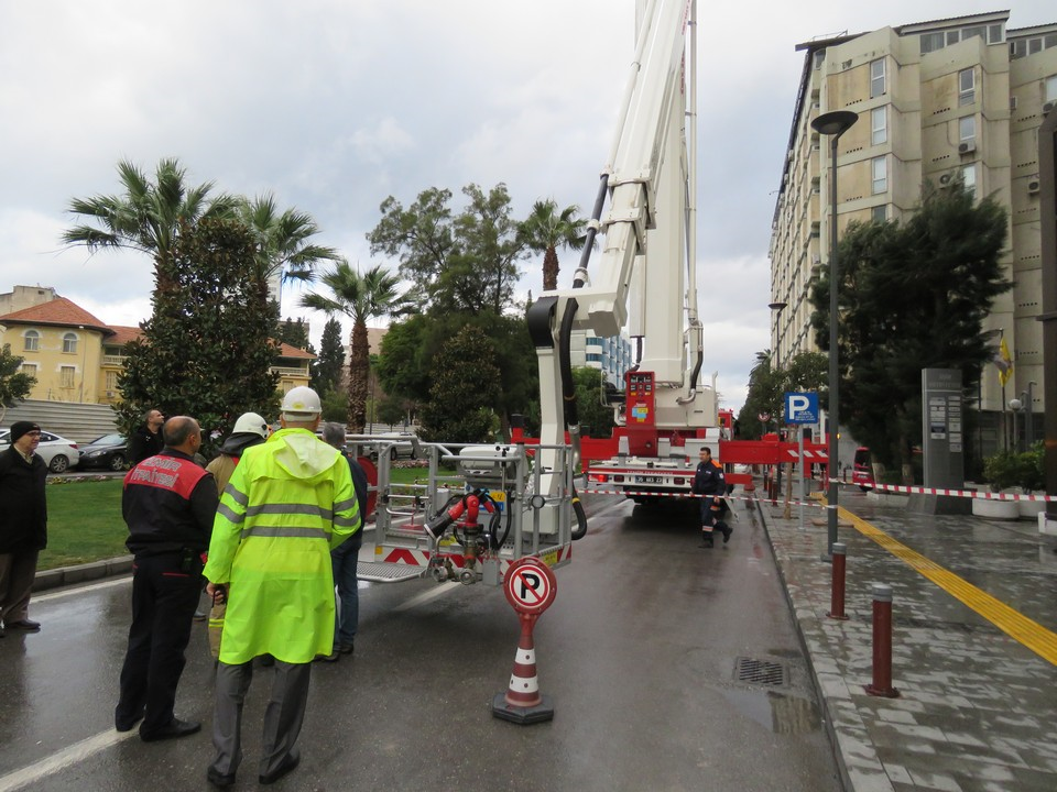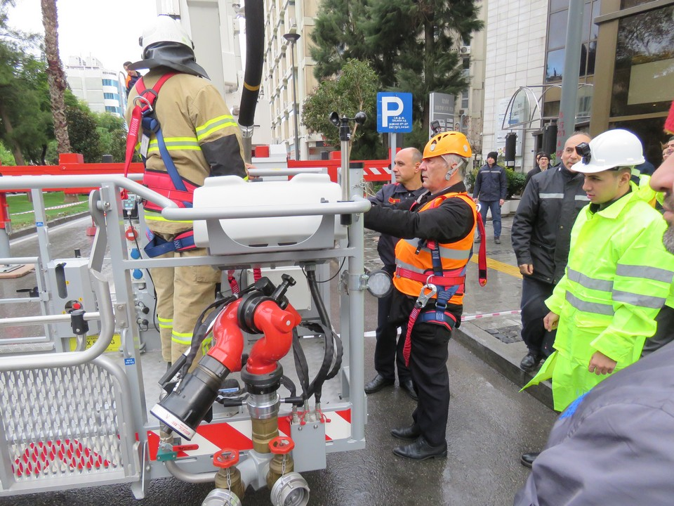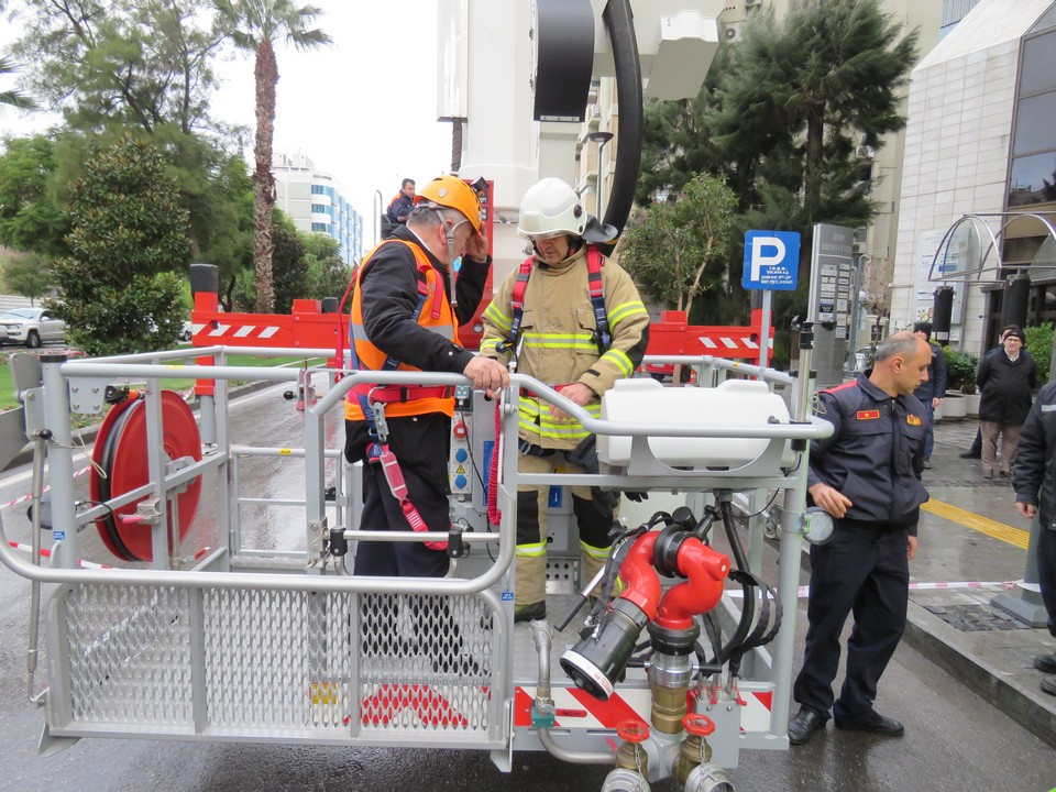 Tatbikatta 90 Metre Sepetli araç da kullanılırken, AKS Ekibi, Yangın Müdahale ekipleri ve motorize ekipler de hazır bulundu. 90 Metre Sepetli araç kurularak acil vakalarda sepetle kurtarma çalışması yapılabilecek durumlar değerlendirildi.