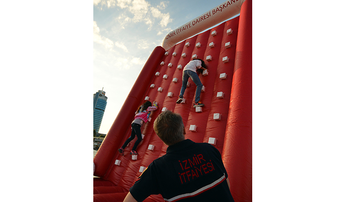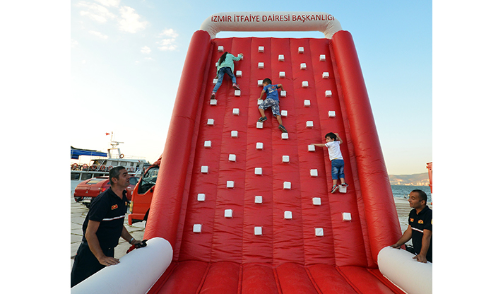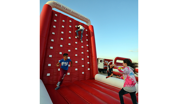 İzmir Büyükşehir Belediyesi tarafından hazırlanan İtfaiye Haftası etkinlik programının ilk durağı, İnciraltı Demokrasi Meydanı oldu. Çocuklar, itfaiyeci abla ve ağabeyleri tarafından kurulan oyun parkurlarında hem eğlendi hem öğrendi.“İtfaiye Haftası” İzmir’de coşku ve heyecanla kutlanıyor. İzmir Büyükşehir Belediyesi, 26 Eylül–2 Ekim tarihleri arasındaki hafta kapsamında, kent genelinde etkin bir program hazırladı. İnciraltı Demokrasi Meydanı’nda İzmir İtfaiyesi’nin çocuklar için hazırladığı oyun parkurları ilgi odağı oldu. Şişme tırmanma-dağcılık duvarı, kaydıraklı itfaiye arasözü çocuklar tarafından büyük ilgi gördü. İtfaiye şeflerinin kontrolleri eşliğinde parkurların keyfini çıkaran çocuklar, doyasıya eğlenip heyecanı en üst seviyede hissetti.
