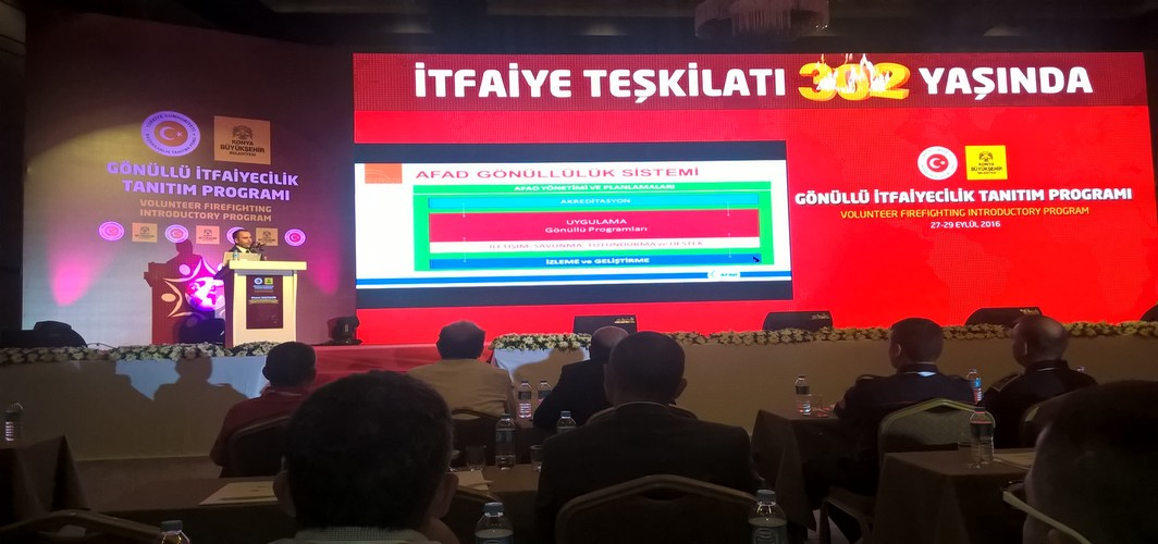 Konya Büyükşehir Belediyesi, İtfaiye Haftası etkinlikleri kapsamında Uluslararası Gönüllü İtfaiyecilik Tanıtım Programı düzenledi. Türkiye’nin 80 şehrinden katılımın olduğu programa teşkilatımız adına Tanıtım ve Kaynak Yönetimi Şube Müdürü Birol HAKTANIR katıldı. Programda gönüllü itfaiyeciliğin önemine dikkat çekilerek, gönüllü itfaiyecilik uygulamaları anlatıldı.25 Eylül - 1 Ekim İtfaiye Haftası kapsamında düzenlenen Uluslararası Gönüllü İtfaiyecilik Tanıtım Programı’nda gönüllü itfaiyeciliğin önemine vurgu yapıldı.