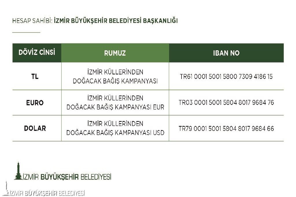 İZMİR BÜYÜKŞEHİR BELEDİYESİ BAŞKANLIĞI İZMİR KÜLLERİNDEN DOĞACAK BAĞIŞ KAMPANYASI