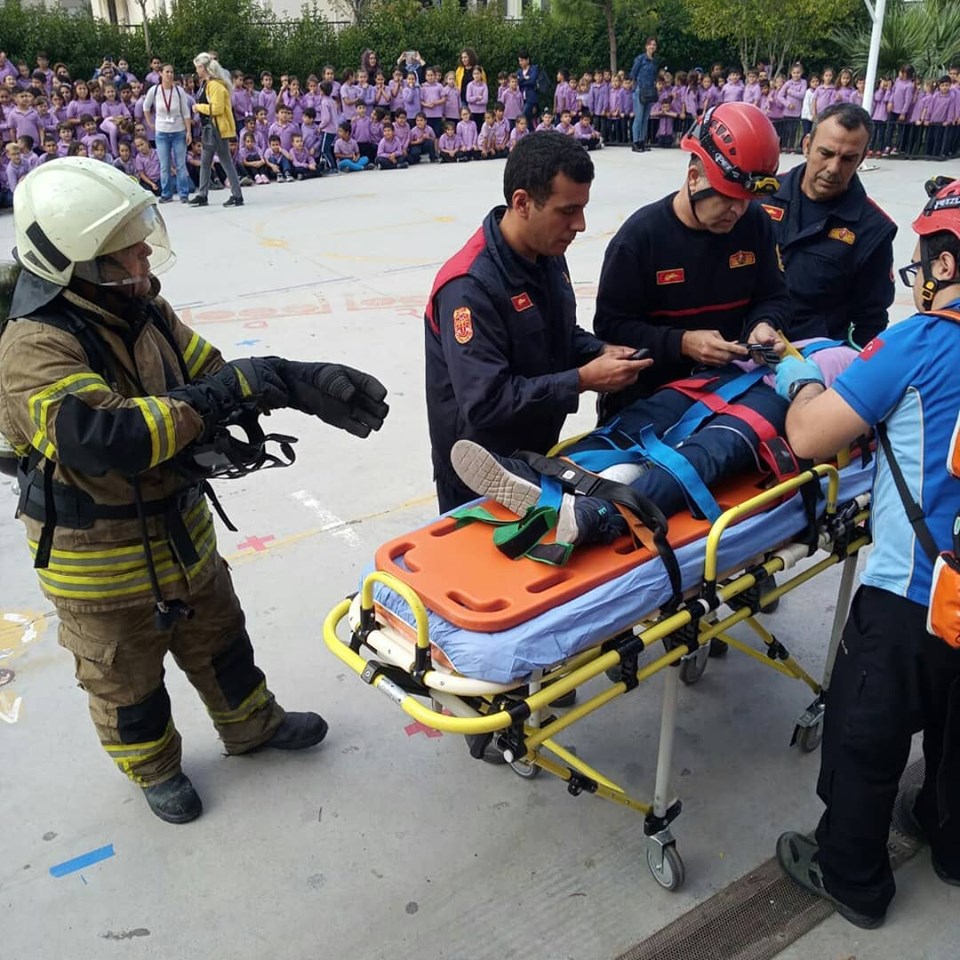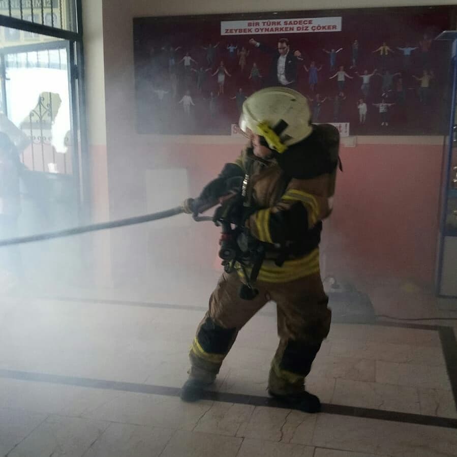Kuzey Bölge Amirliği Aliağa Müfrezesi yangın müdahale ve AKS Ekipleri tarafından yapılan tatbikatta senaryo gereği okulda yangın çıkması sonucu ilk olarak bina tahliye edildi. Yangın söndürme çalışmaları ve binada mahsur kalanları kurtarma işlemi yapılırken öğrencilere yangınla ilgili temel bilgiler ile itfaiyecilik hakkında bilgilendirmeler yapıldı.