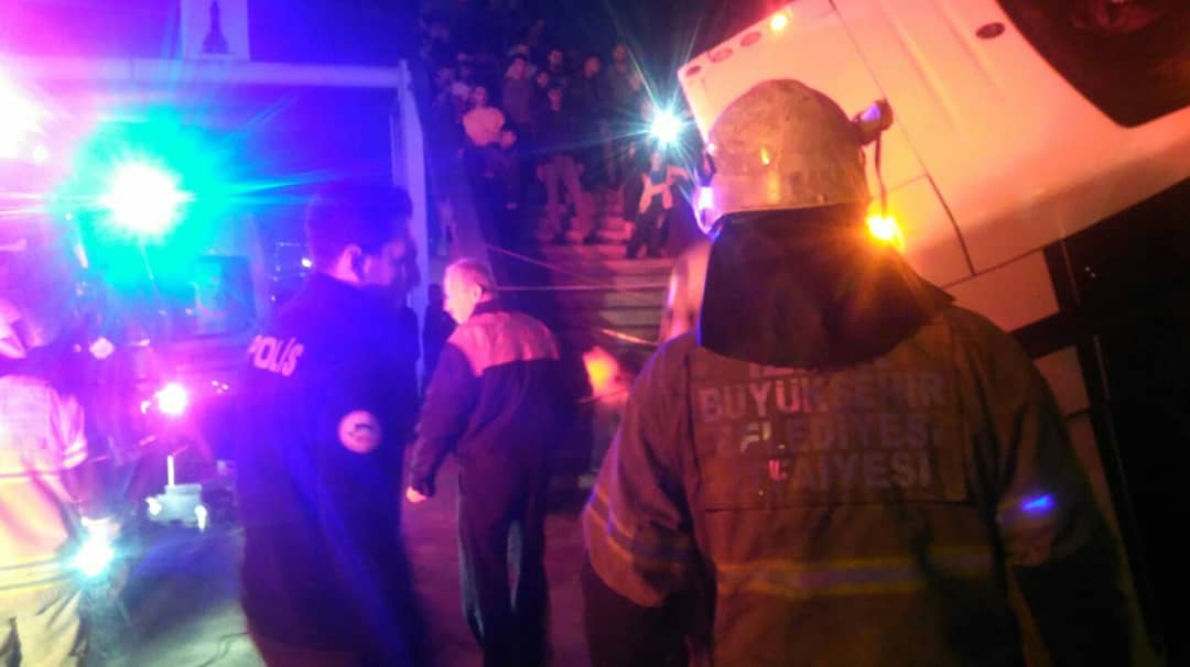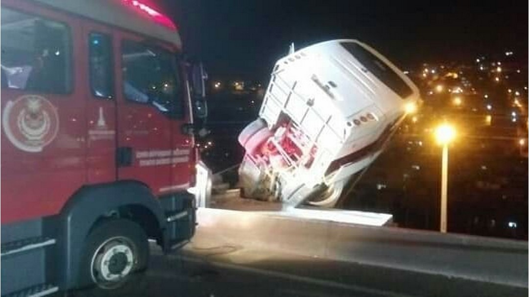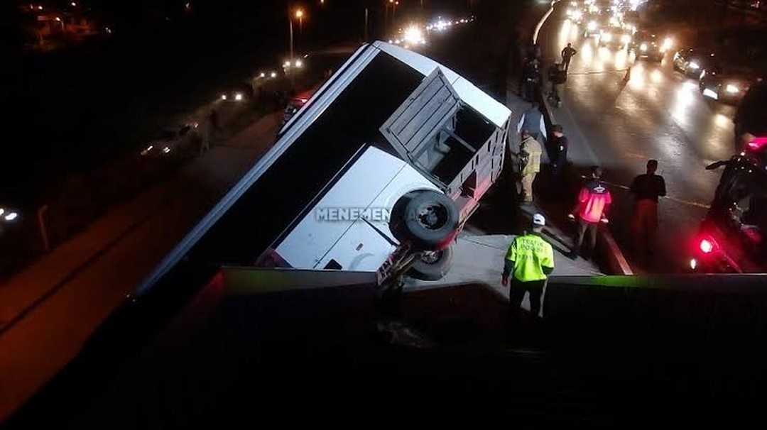 Dün akşam saatlerinde Konak ilçesi Yeşildere Caddesi üzerinde seyir halindeki bir otogar servis midibüsü, sürücüsünün direksiyon hakimiyetini kaybetmesi sonucu trafik kazası meydana geldi. 112 (110) ihbar hattına gelen ihbarla 112 Acil Çağrı Merkezi tarafından olay yerine yangın müdahale ve AKS ekiplerimiz ile emniyet ekipleri ve çok sayıda ambulans sevk edildi. Aşağı seviyedeki yan yola uçarak havada asılı kalan servis midibüsü, aşağı yuvarlanmaması için önce ekiplerimiz tarafından sabitlenerek emniyete alınırken yaralılar ise ambulanslarla hastanelere sevk edildi. Ölen ve ağır yaralananın olmadığı kaza hakkında emniyet ekipleri soruşturma başlattı.