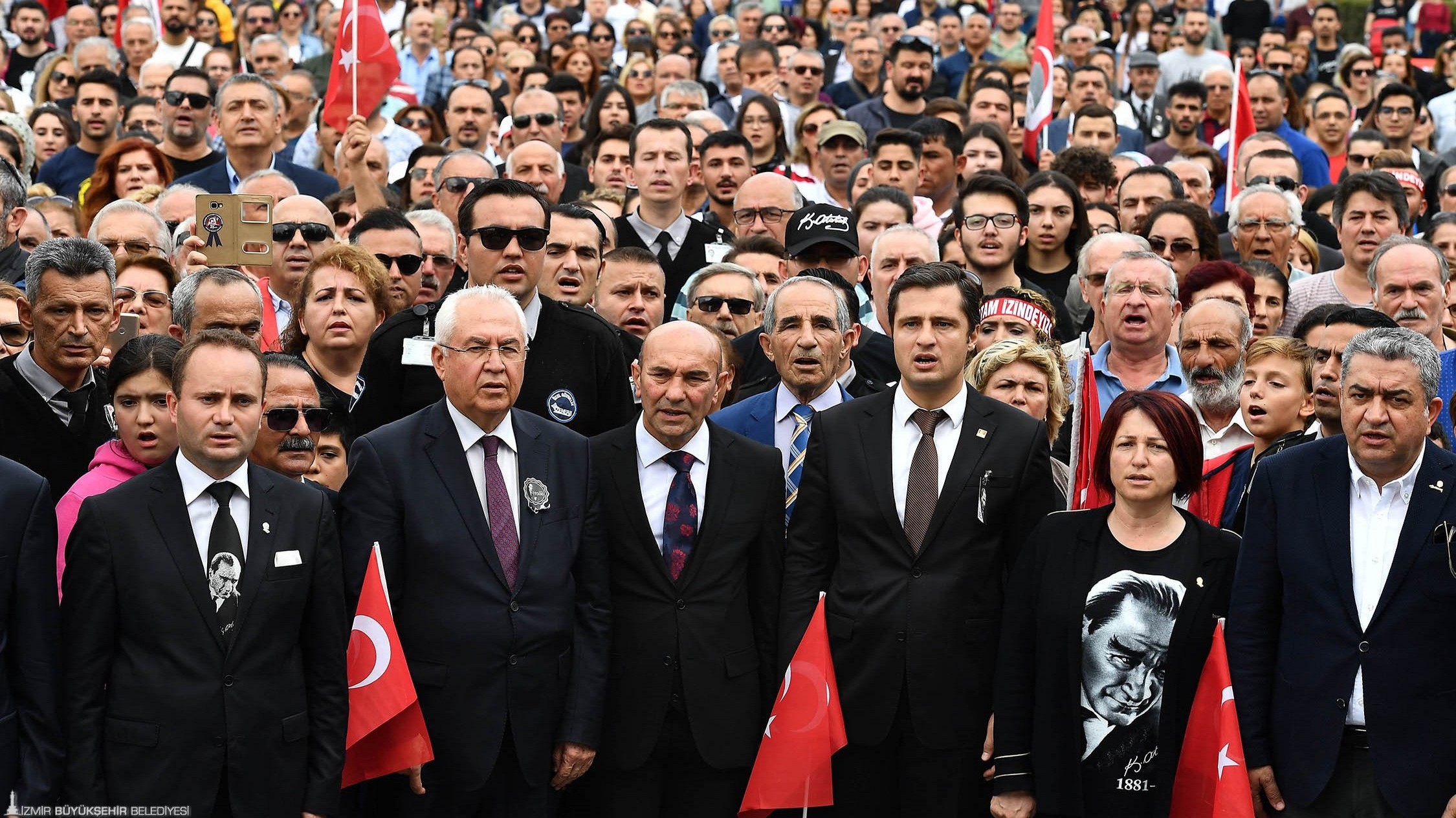Cumhuriyet Meydanı'nda yürüyüşün son bulmasının ardından, İzmir Büyükşehir Belediye Başkanı Tunç Soyer günün anlam ve önemine dair tören alanında bir konuşma yaparak, "Sevgili İzmirliler, Ben Mustafa Kemal Atatürk'ü, Ata'mızı, yalnızca yaptıkları ve söyledikleriyle değil, O'nun düşünce ve muhakeme dünyasıyla da anlamaya çalışıyorum. Aramızda olsaydı bugünün büyük meselelerine yaklaşımını ve nasıl çözeceğini tasavvur etmeye dikkat ediyorum. Dünya'yı, yaşadıklarımızı, O'nun zihniyle izliyor, attığım her adım için O'nu rehber kabul ediyorum" dedi.