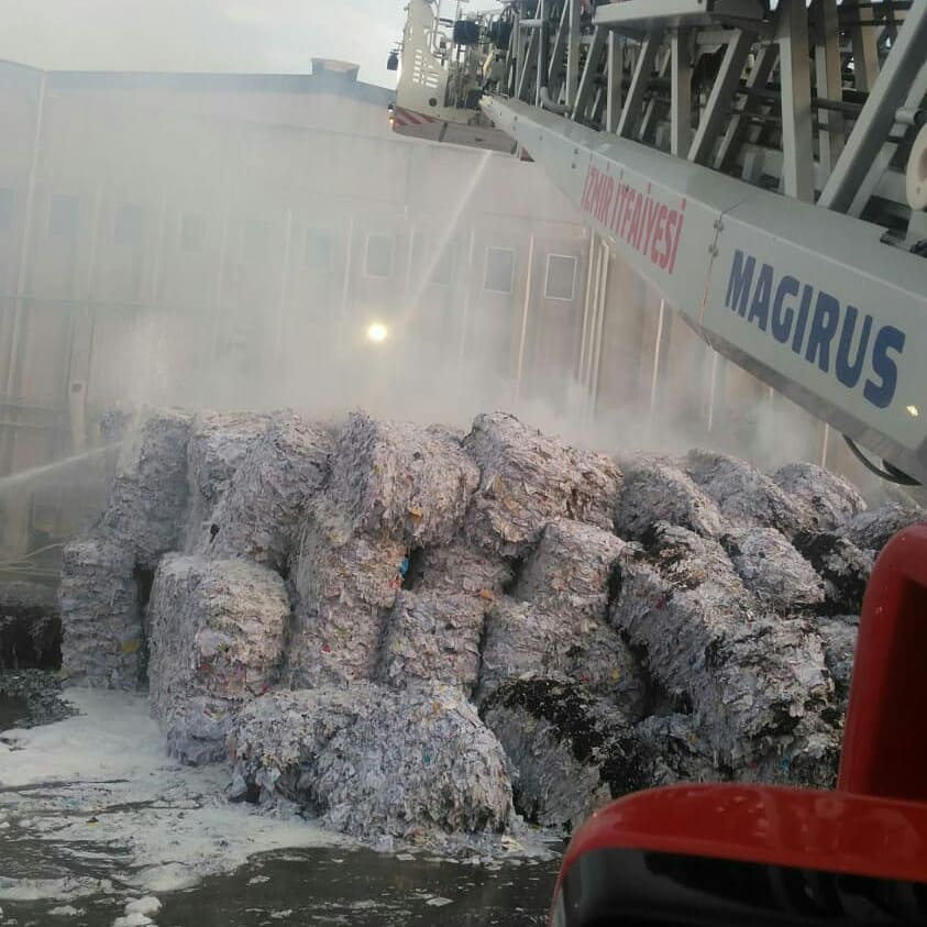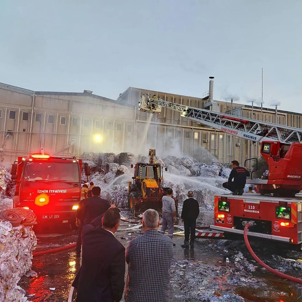 Bugün Kemalpaşa İlçesinde faaliyet gösteren bir kağıt dönüşüm tesisinin açık alandaki depolarında yangın çıktı.
