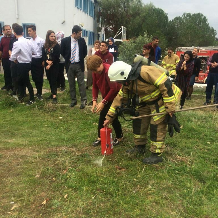 Foça İlçesi Halim Foçalı Mesleki ve Teknik Anadolu Lisesinde itfaiye tanıtımı ve yangın tatbikatı gerçekleştirdik. Kuzey Bölge Amirliği Foça Müfrezemiz 3.Posta yangın müdahale ekibinin düzenlediği tatbikatta öğrenci ve öğretmenlere yangın esnasında tahliye, kuru kimyevi toz cihazı ile yangına yaklaşma ve söndürme eğitimi verilirken itfaiye, itfaiyecilik ve itfaiye araçlarının da tanıtımını yaptık.