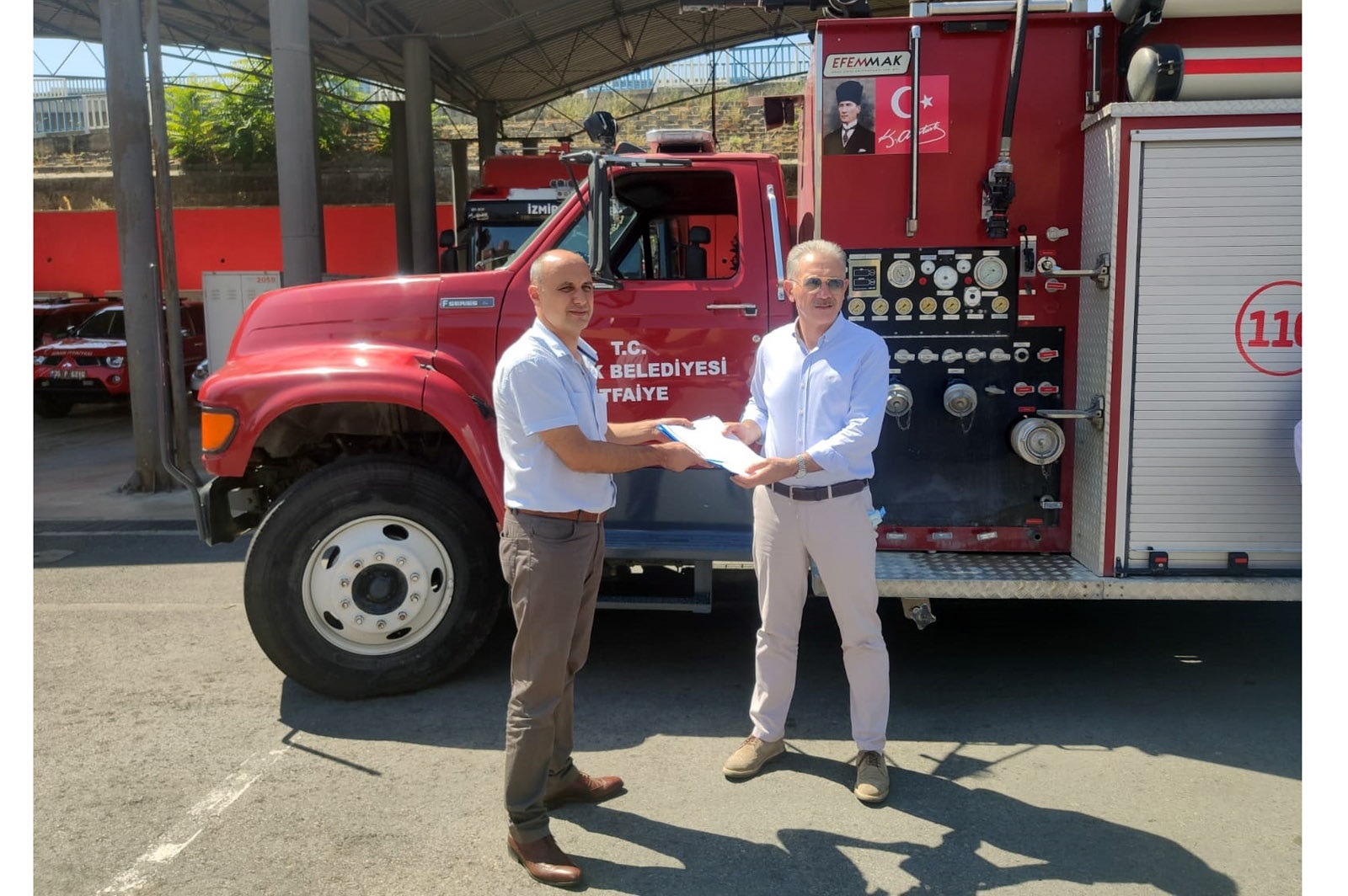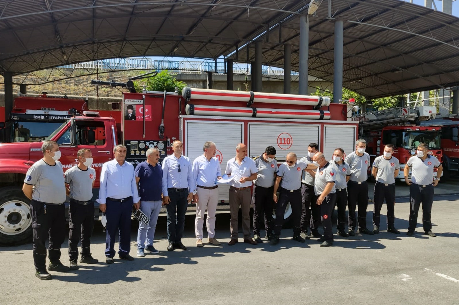 İzmir Büyükşehir Belediyesi İtfaiye Daire Başkanlığı Yenişehir Merkezi'ndeki araç devrine Daire Başkanı Varlıorpak ve Başkan Büyükkaya'nın yanı sıra İzmir İtfaiyesi Yangın ve Acil Müdahale Şube Müdürü Aydın Mutlu, İzmir Hanaklılar Dernek Başkanları Mustafa Odabaş ve Kemal Gürbulak ile İşadamı Ciyat Değirmenci ve dernek üyeleri katıldı.