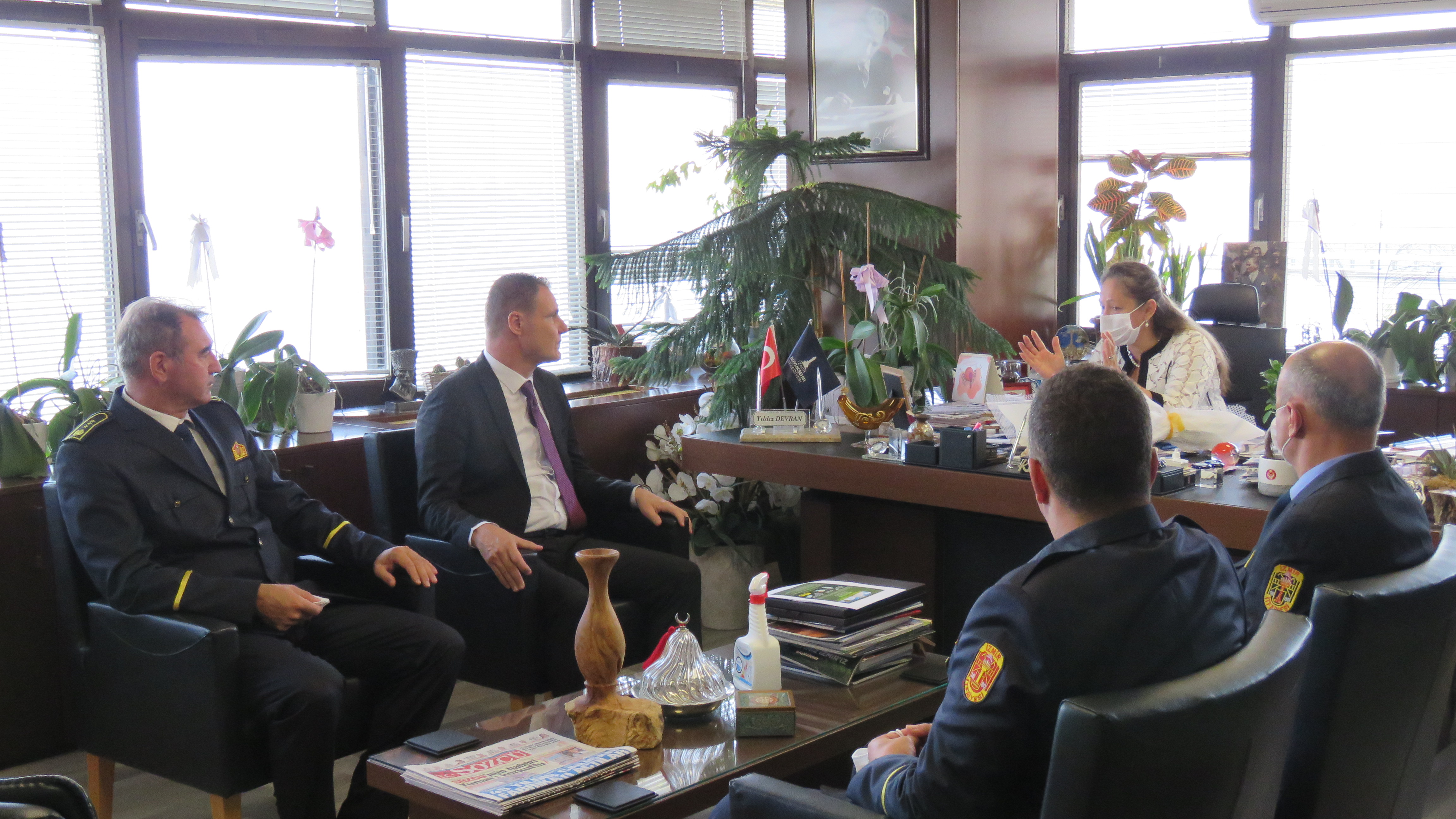 Ateş Savaşçıları, törenden sonra İtfaiye Dairesinin bağlı olduğu Genel Sekreter Yardımcısı Yıldız Devran'ı makamında ziyaret ederek bilgi alışverişinde bulundu.