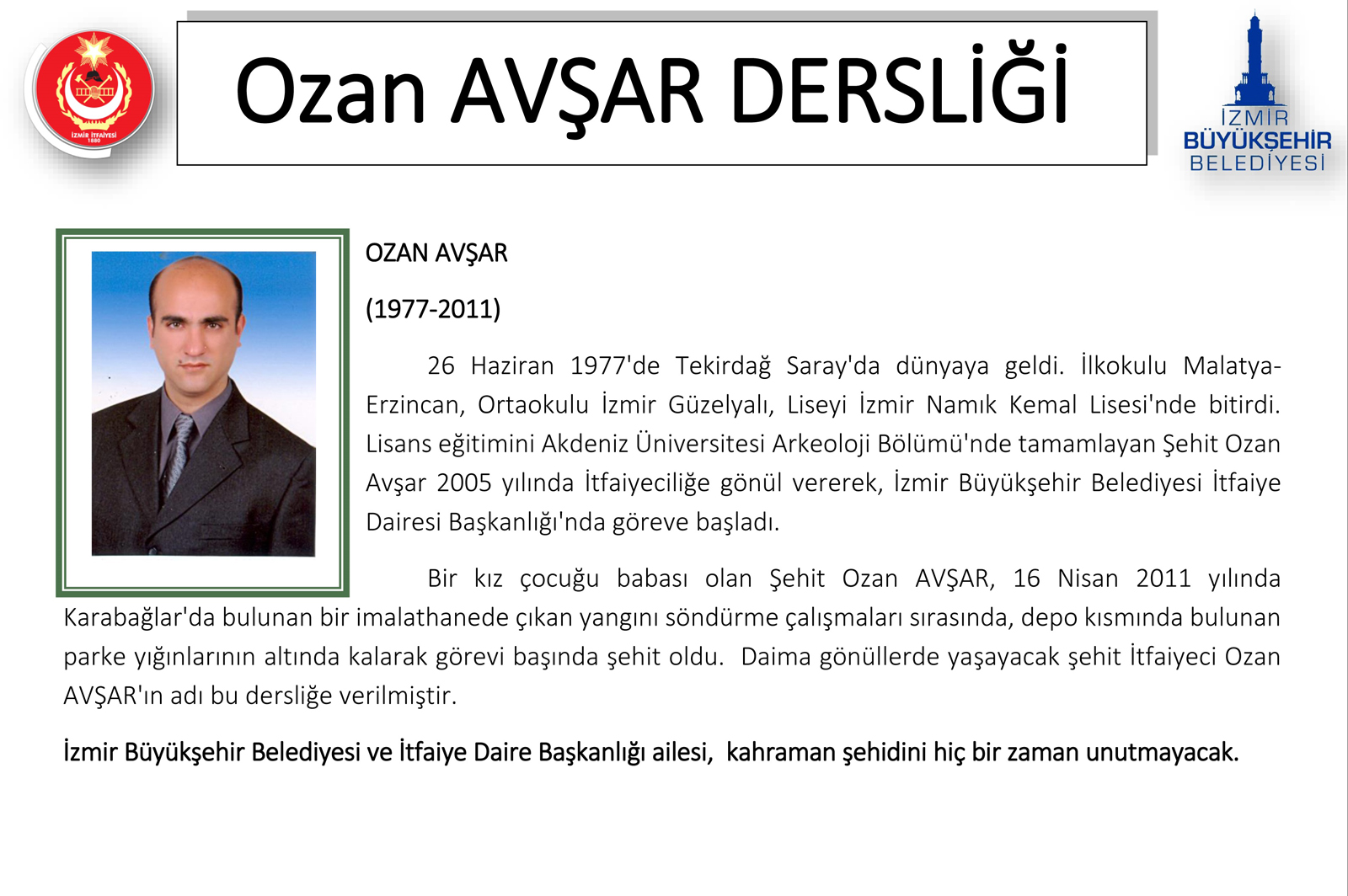 Bir kız çocuğu babası olan Şehit Ozan Avşar, 16 Nisan 2011 yılında Karabağlar'da bulunan bir imalathanede çıkan yangını söndürme çalışmaları sırasında, depo kısmında bulunan parke yığınlarının altında kalarak görevi başında şehit oldu.