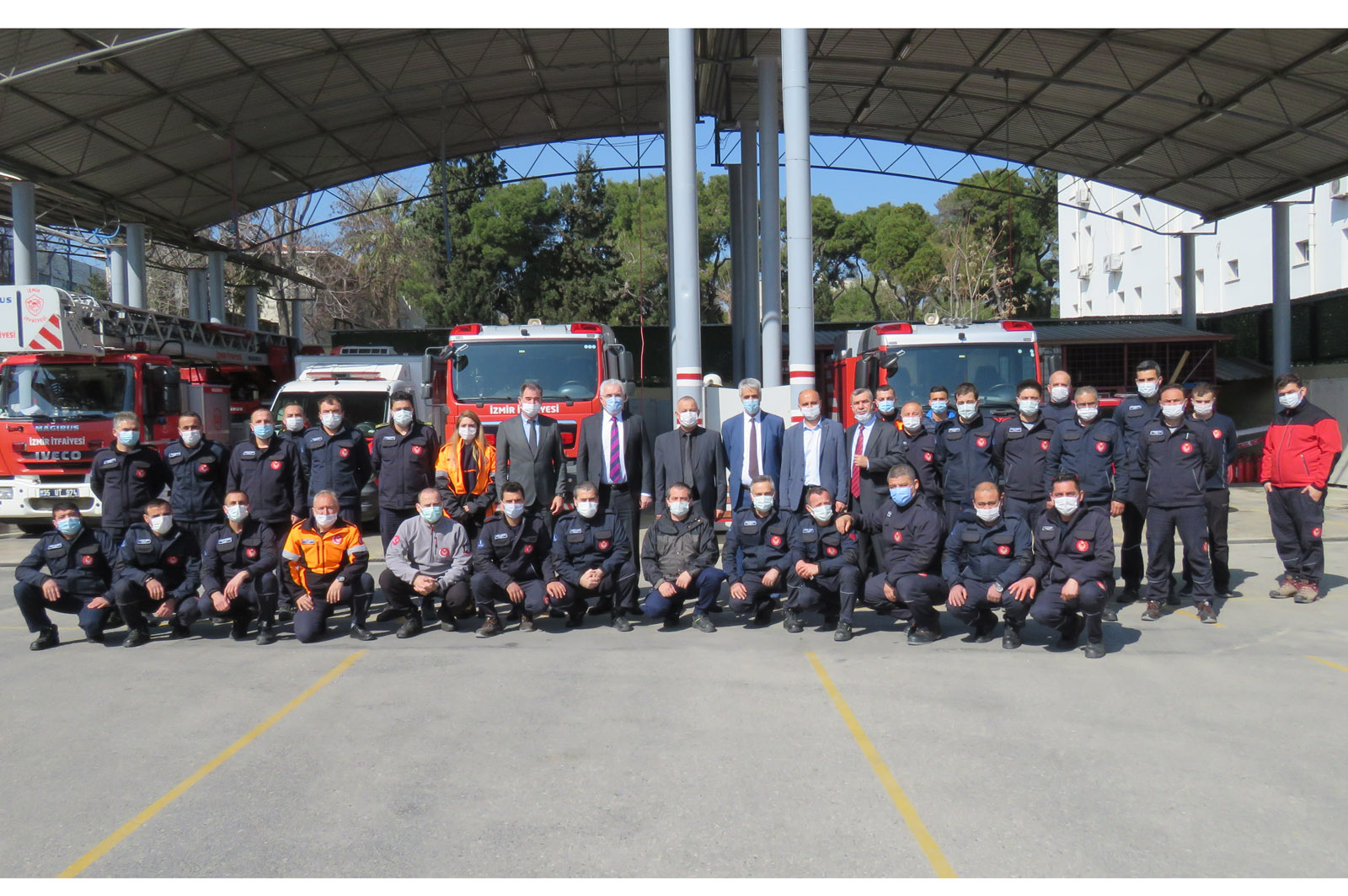 Önce İzmir Büyükşehir Belediyesi İtfaiye Dairesi Başkanlığı'nın Yenişehir'de bulunan merkezine gelen İstanbul heyetini, Daire Başkanı İsmail Derse ile Yangın ve Acil Müdahale Şube Müdürü Aydın Mutlu ağırladı.