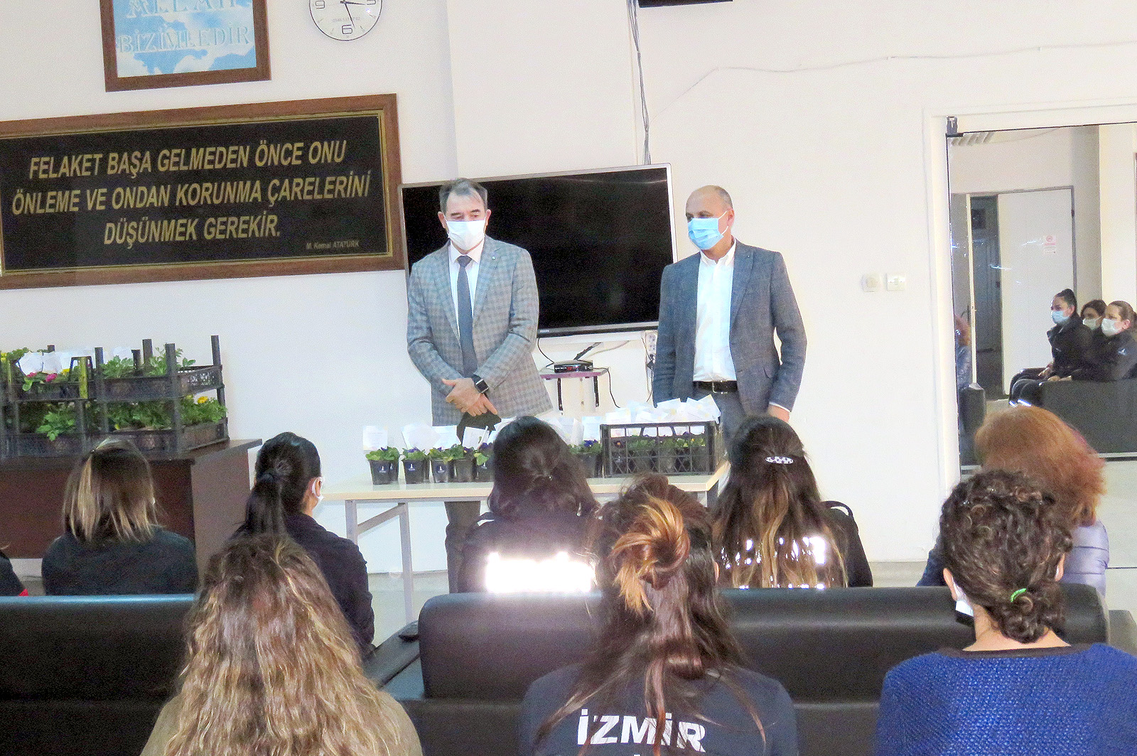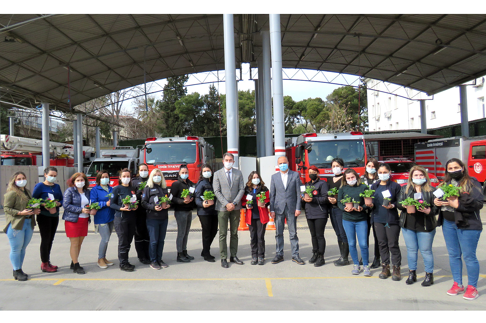 İzmir Büyükşehir Belediyesi İtfaiye Dairesi Başkanlığ'na da ulaşan mesajlı çiçekleri, Daire Başkanı İsmail Derse, önce Toros Eğitim Merkezi Eğitim ile Arama Kurtarma ve Afet İşleri müdürlüklerini ziyaret ederek Eğitim şube müdürü Serkan Korkmaz ve Arama Kurtarma Amiri Abdül Duyulur ile, daha sonra Yangın ve Acil Müdahale müdürü Aydın Mutlu ile birlikte daire başkanlığı merkez hizmet binasındaki kadın itfaiyecilere Başkan Soyer'in selamı ile birlikte iletti.