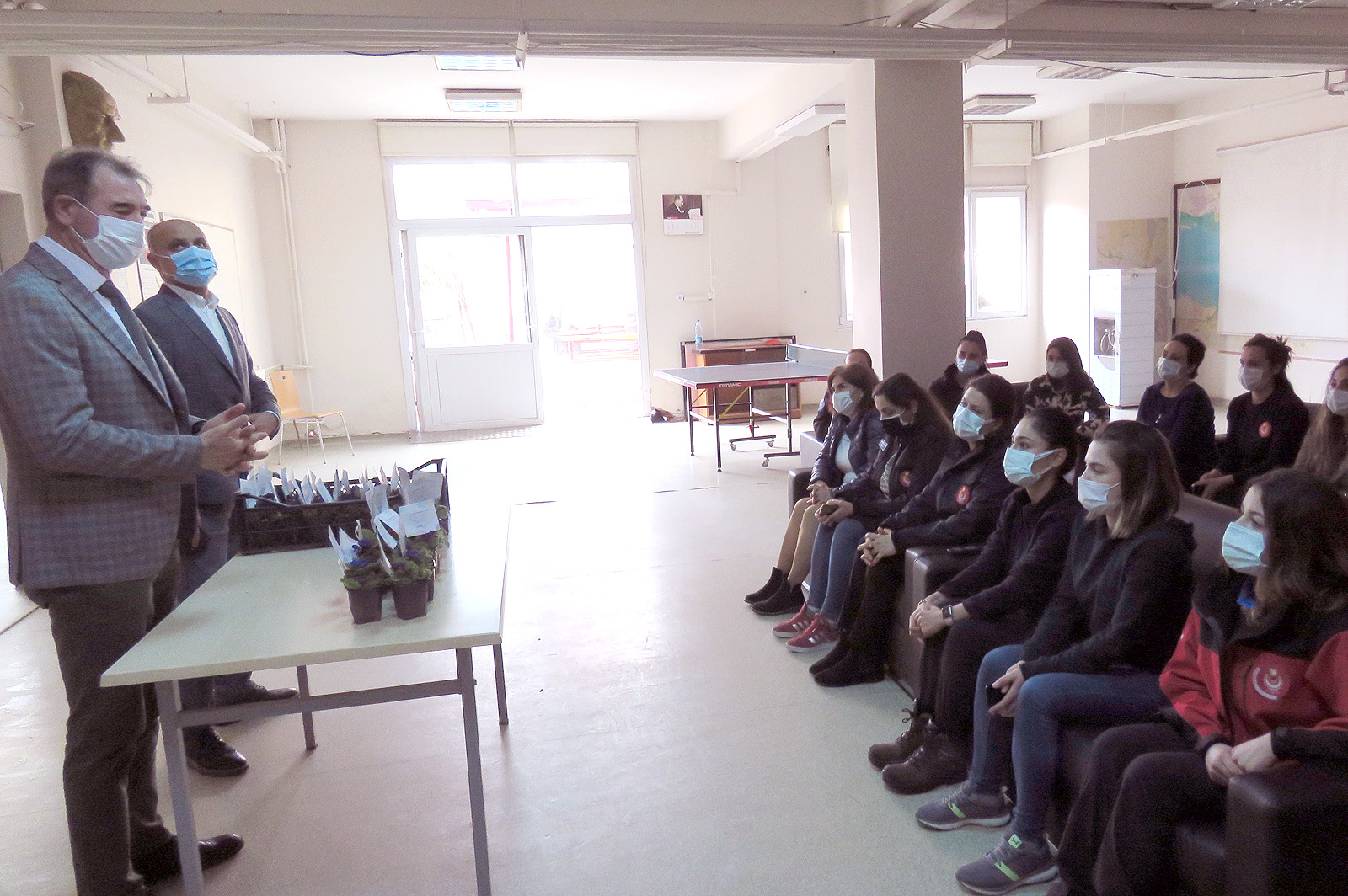 İsmail Derse, "8 Mart Dünya Kadınlar Gününüzü kutluyorum. Teşkilatımızın içinde olmanızdan dolayı çok mutluyuz. Biliyoruz yükünüz ağır. İş yaşamınızda da birçok zorluklarla karşılaşıyorsunuz. Kiminiz nöbet sisteminde, kiminiz ise 08.00 -17.00 sisteminde çalışıyorsunuz. Bu çalışmalarınız içinde hepinize farklı farklı sorumluluklar düşüyor.