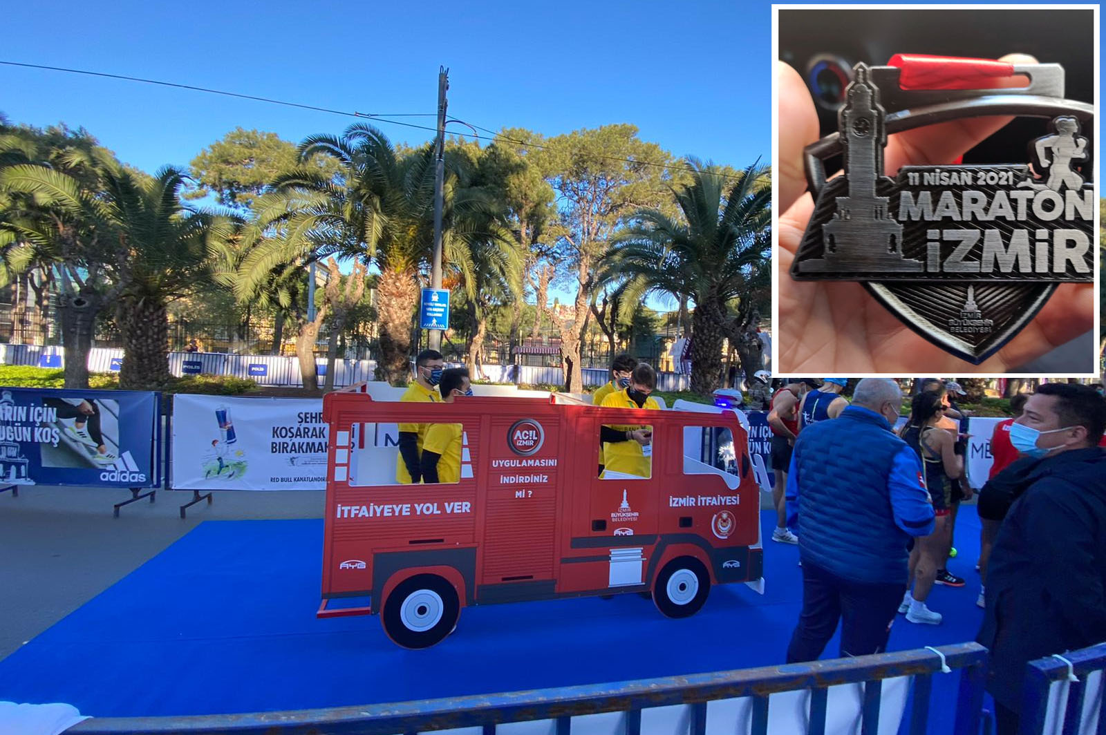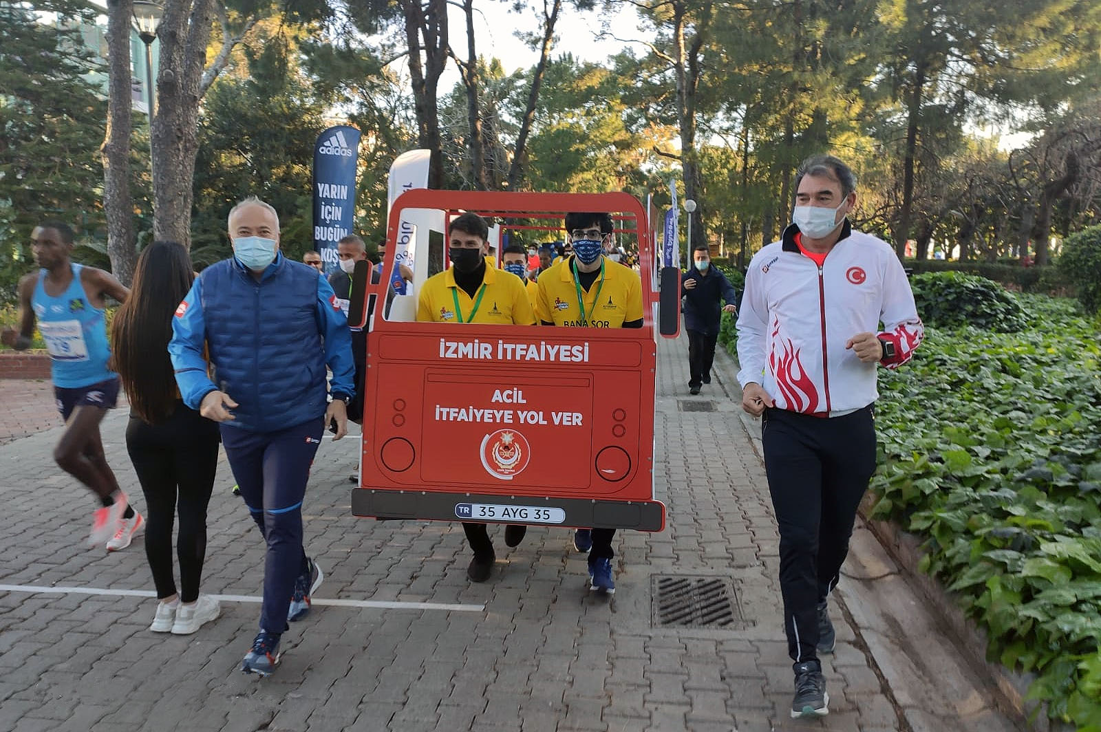 İzmir Büyükşehir Belediyesi İtfaiye Daire Başkanlığı haftasonu İzmir'de heyecan fırtınası yaşatan İkinci Uluslararası Maratonİzmir'e 16 kişilik ekip ile katıldı. Etiyopyalı atlet Tsegaye Getachew'in 2.09.25'lik derecesiyle tarihe geçtiği maratona; İzmir İtfaiye Daire Başkanı İsmail Derse, Yangın ve Acil Müdahale Şube Müdürü Aydın Mutlu, İtfaiye Eğitim Şube Müdürü Serkan Korkmaz, Arama Kurtarma Amiri Abdül Duyulur ile 12 kişilik itfaiye ekibi katıldı. 42 ve 10 kilometrelik iki kategoride düzenlenen maratonİzmir'de, İzmir İtfaiyesi'nin dinamik ekibi, 10 kilometrelik parkuru koştu ve maraton anı madalyası aldı. İzmir İtfaiyesi, Maratonİzmir'de maket itfaiye aracı ile "İtfaiyeye yol ver" Acil İzmir uygulamasını indirimi ile sosyal mesaj verdi.
