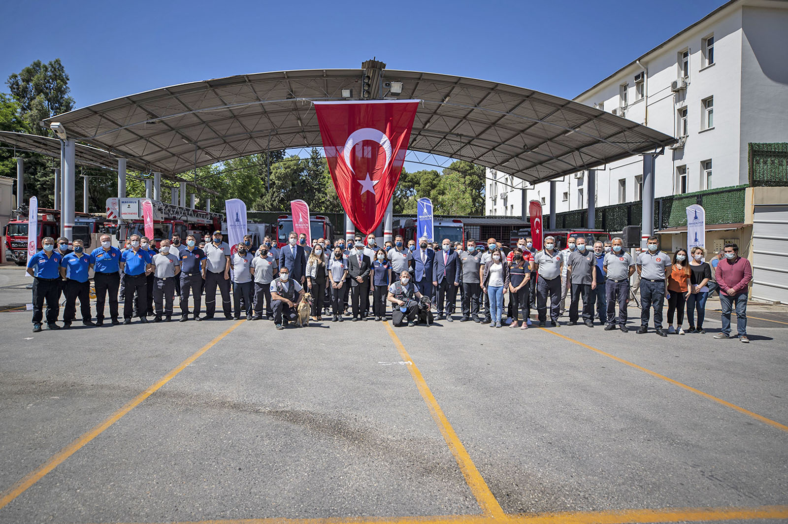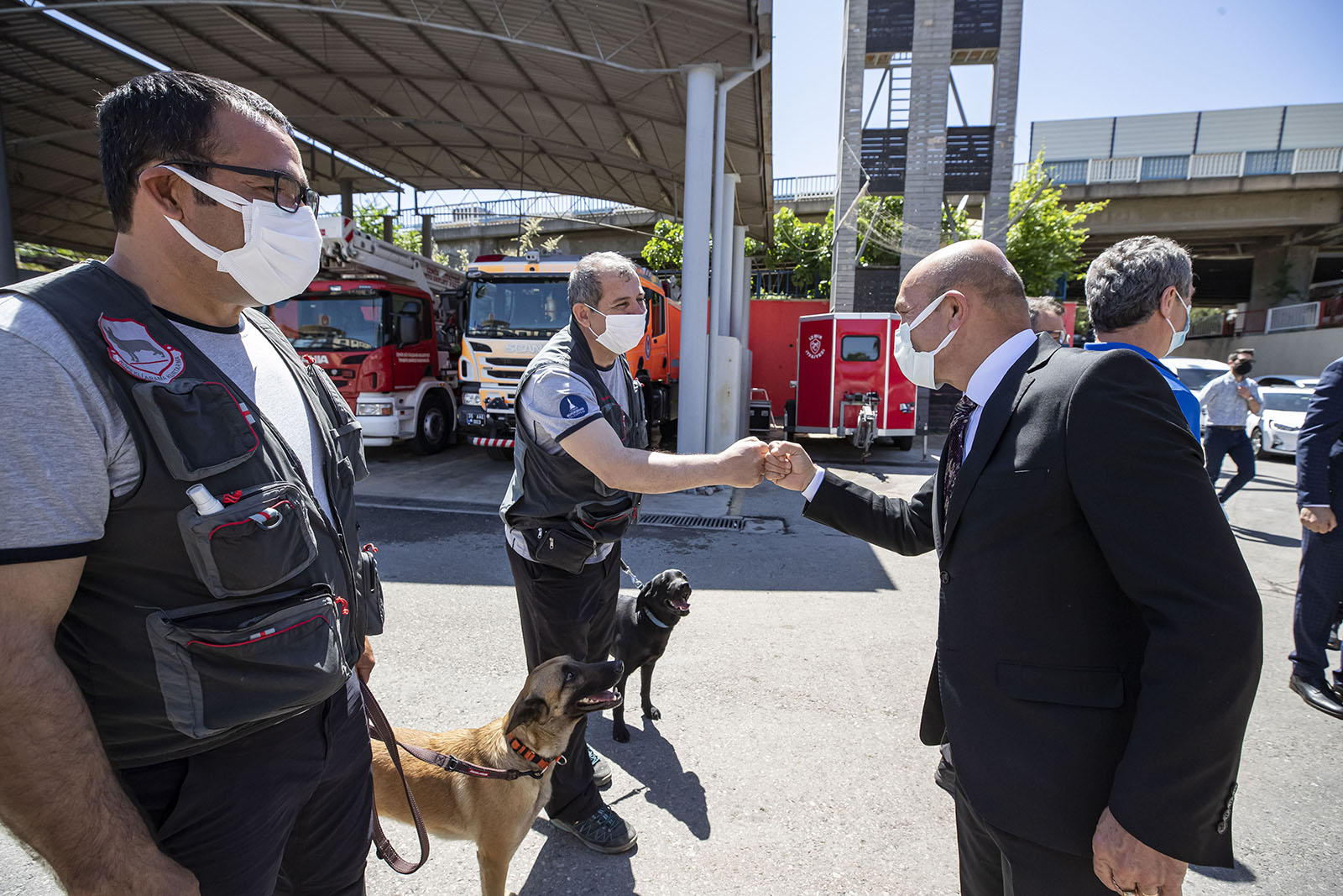 İzmir Büyükşehir Belediyesi Başkan Vekili Mustafa Özuslu, Genel Sekreter Dr. Buğra Gökçe, Genel Sekreter Yardımcısı Yıldız Devran'ın da Soyer'e eşlik ettiği ziyarette; İtfaiye Dairesi Başkanı İsmail Derse, Yangın ve Acil Müdahale Şube Müdürü Aydın Mutlu, Eğitim Şube Müdürü Serkan Korkmaz, Arama Kurtarma Amiri Abdül Duyulur ve ateş savaşçıları katıldı.