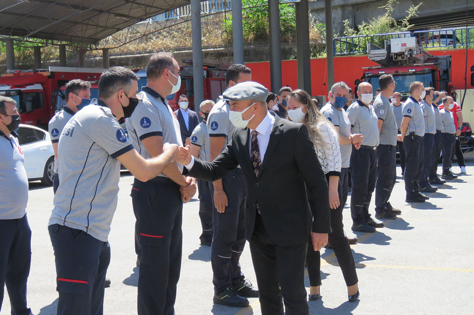 İzmir Büyükşehir Belediyesi İtfaiye Daire Başkanlığı'nın Yenişehir'deki merkezini ziyaret eden Başkan Tunç Soyer, personelin Ramazan Bayramını kutladı.