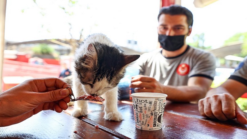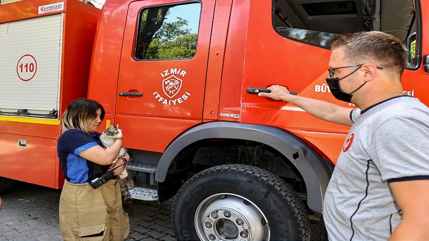İzmir'de yangından kurtarıldıktan sonra sahibinin alamayacağını bildirdiği kedinin bakımını itfaiyeciler üstlendi.