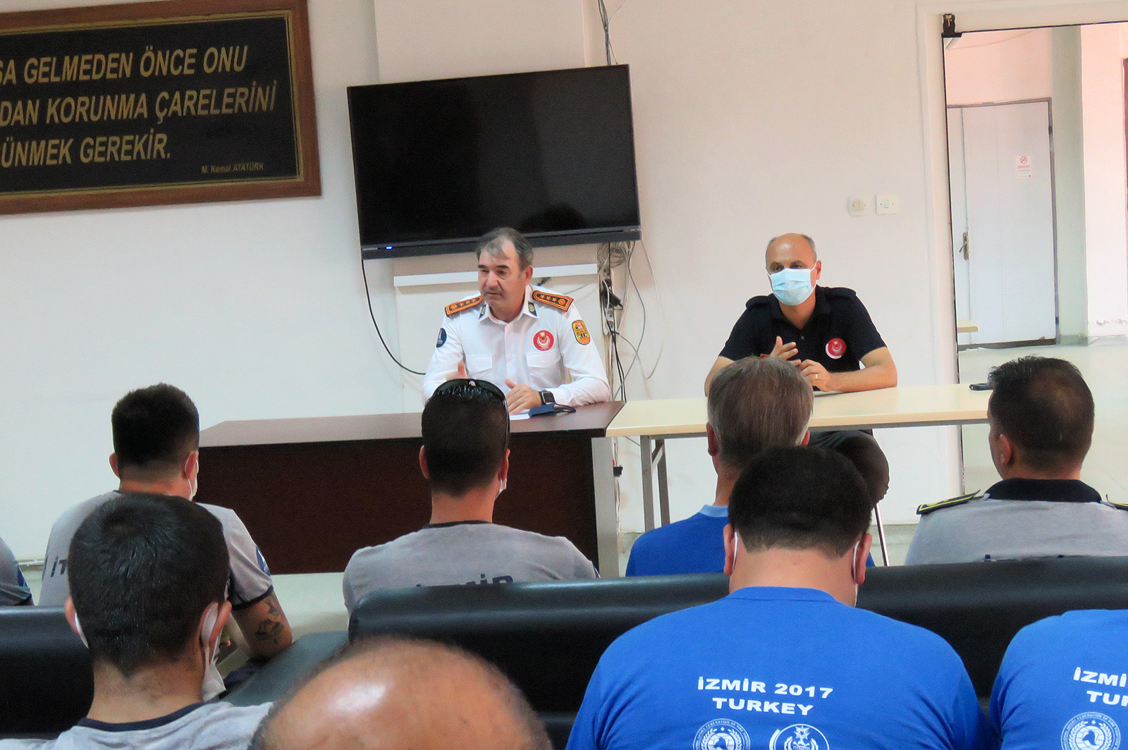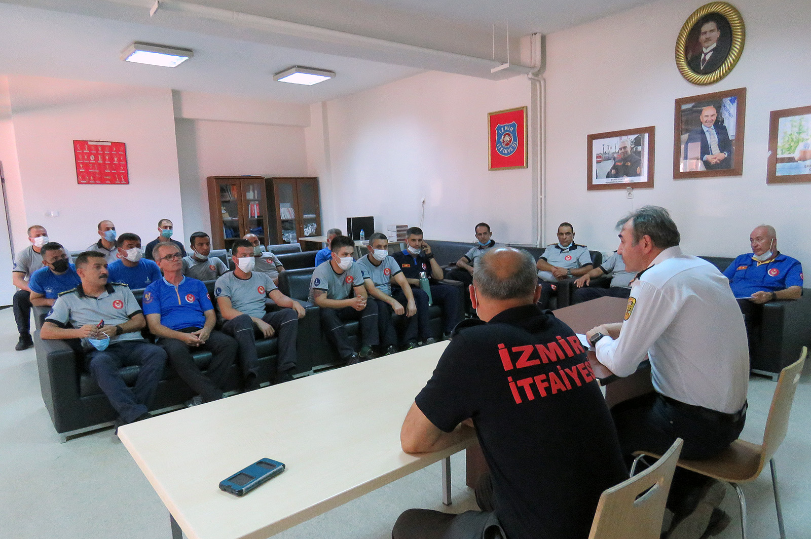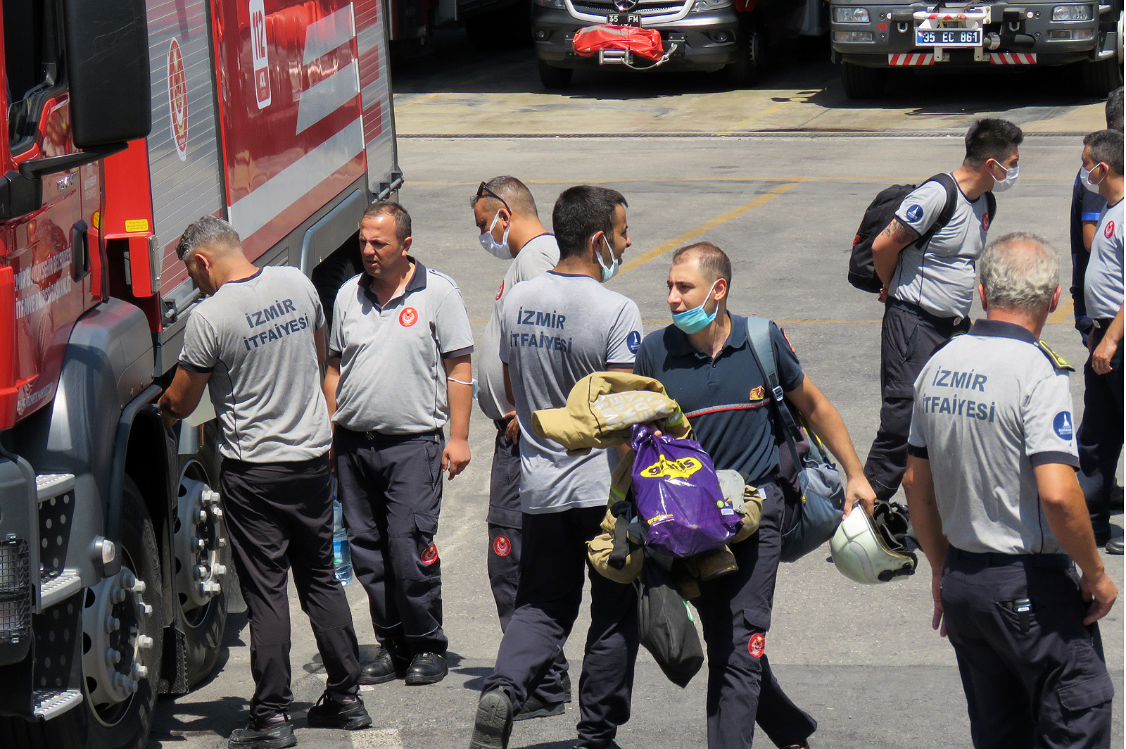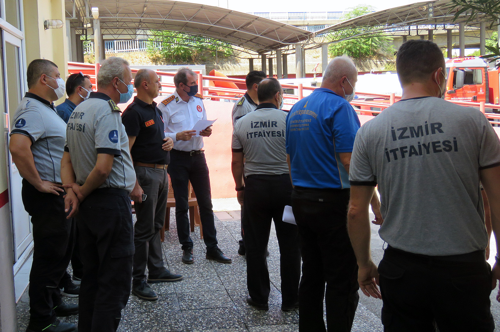 Manavgat'a gitmek için yola çıkan ateş savaşçılarını, İzmir İtfaiye Dairesi Başkanı İsmail Derse ile Yangın ve Acil Müdahale Şube Müdürü Aydın Mutlu uğurladı.