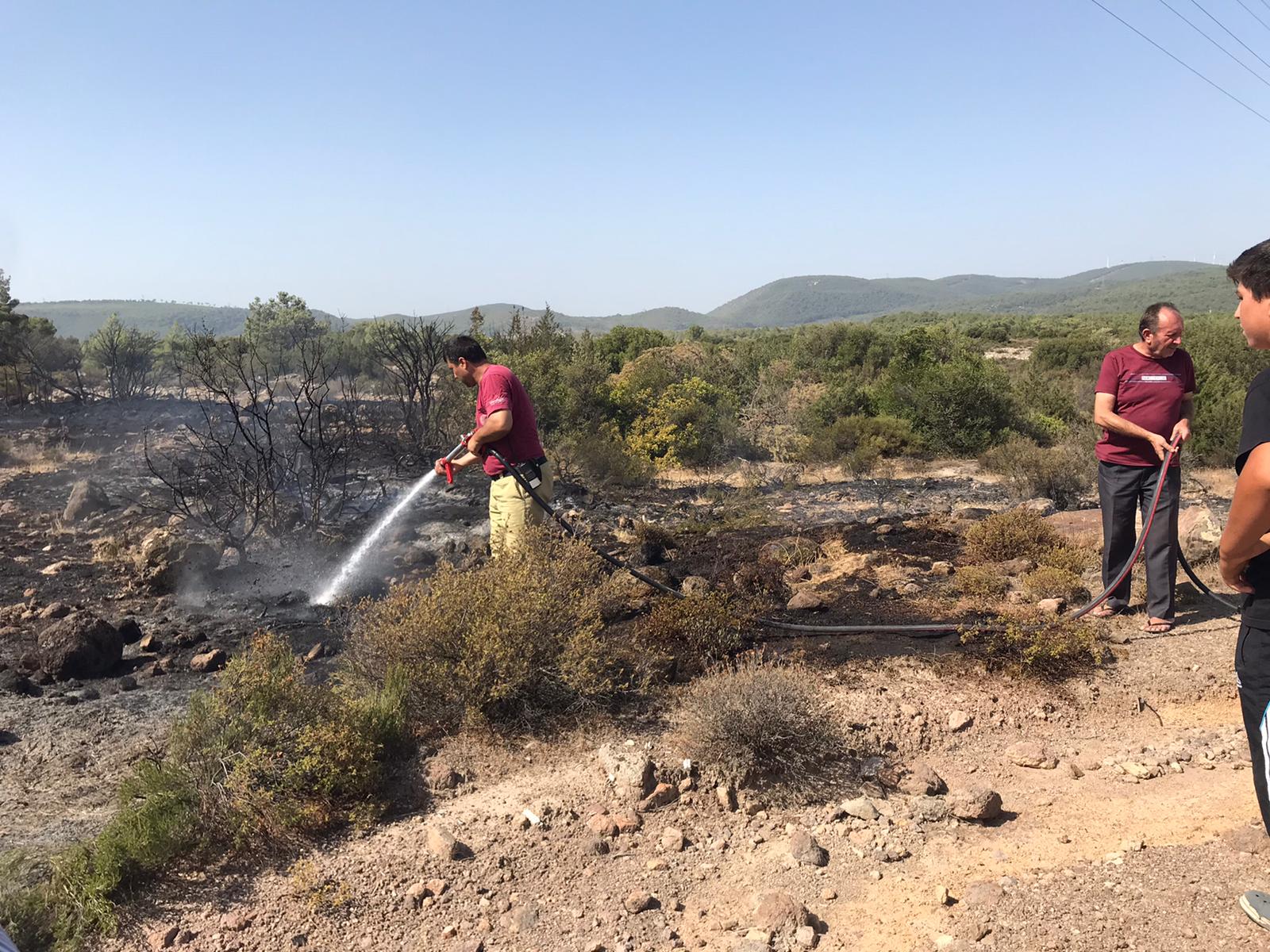 Ancak durumdan haberdar edilen komşu Barbaros Mahallesi Muhtarı Barbaros Ersan, İzmir Büyükşehir Belediyesi’nin köylerdeki yangınlara erken müdahale edilebilmesi için verdiği 3 ton su kapasiteli tankerle çok daha kısa sürede yangın bölgesine ulaştı. Mahalle sakinlerinin de desteğiyle alevler hemen söndürüldü.