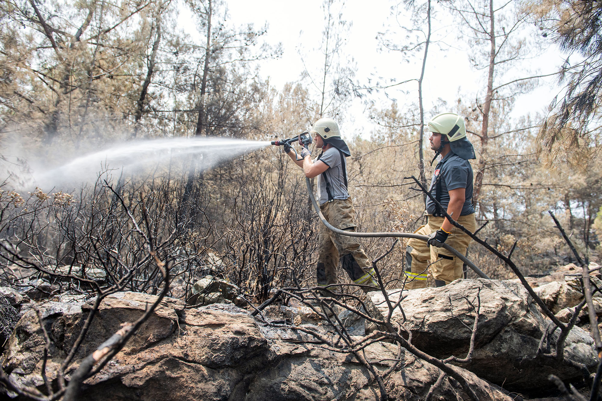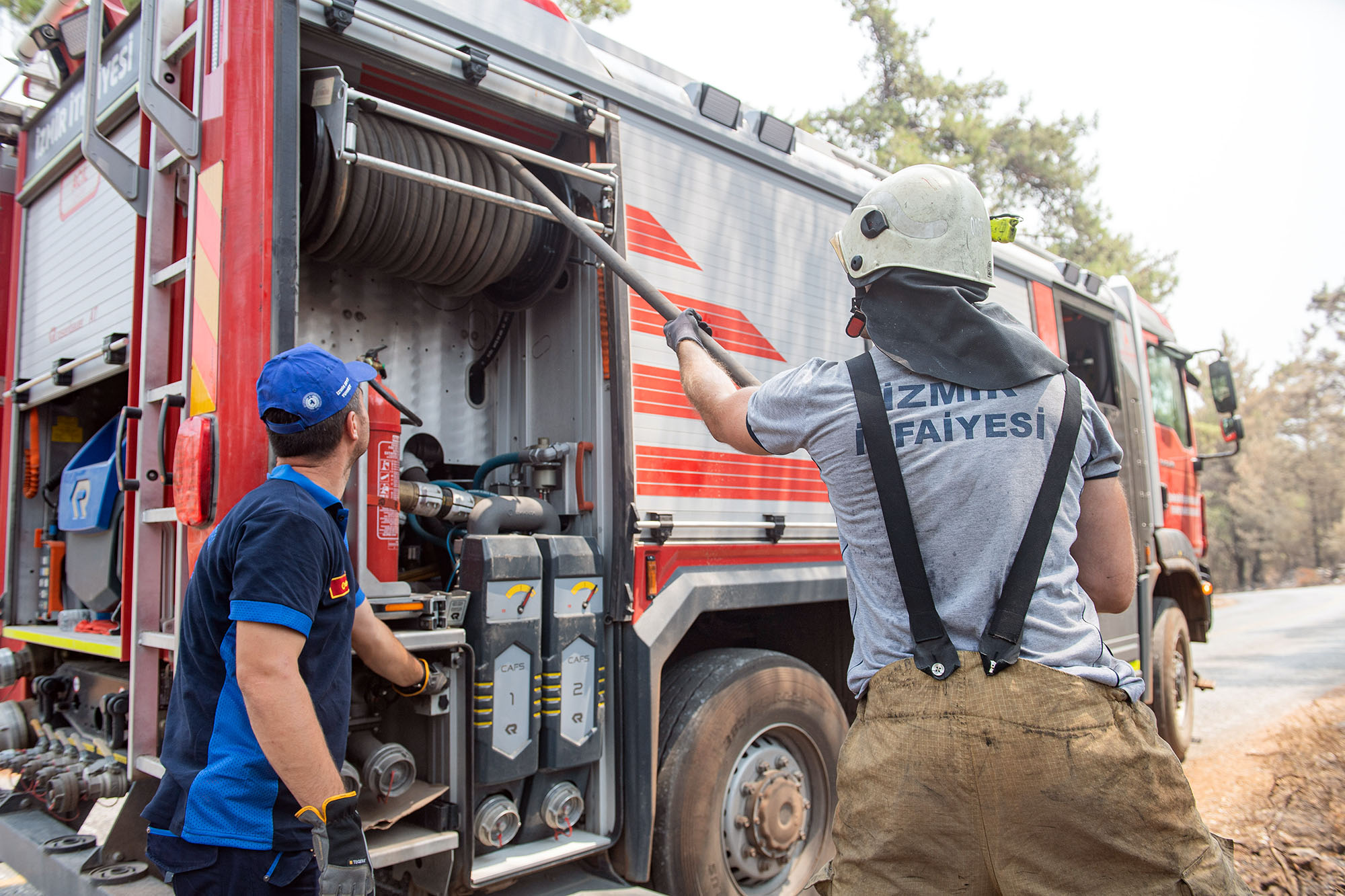 İzmir İtfaiyesi Manavgat, Marmaris, Bodrum ve Milas’ta 54 personel, 6 itfaiye arazözü, 25 su tankeri, 3 itfaiye hizmet ve lojistik destek aracı ile hizmet verdi.