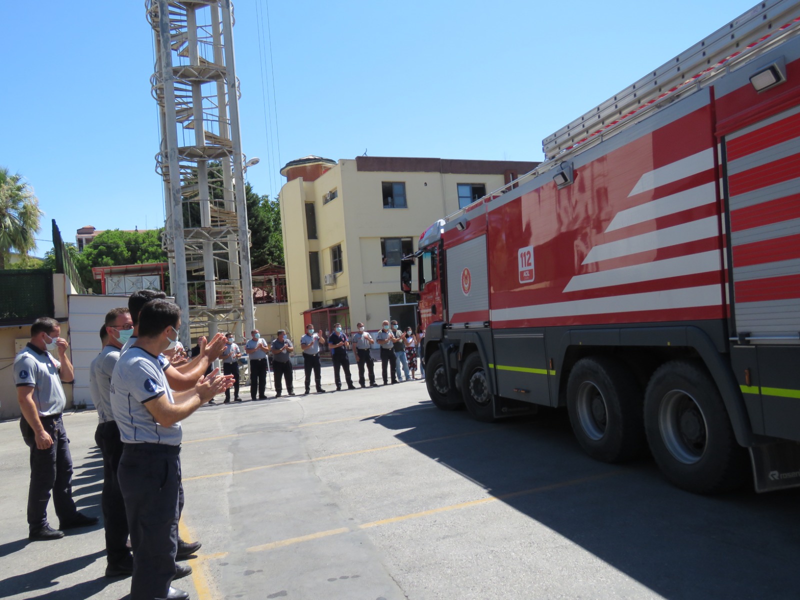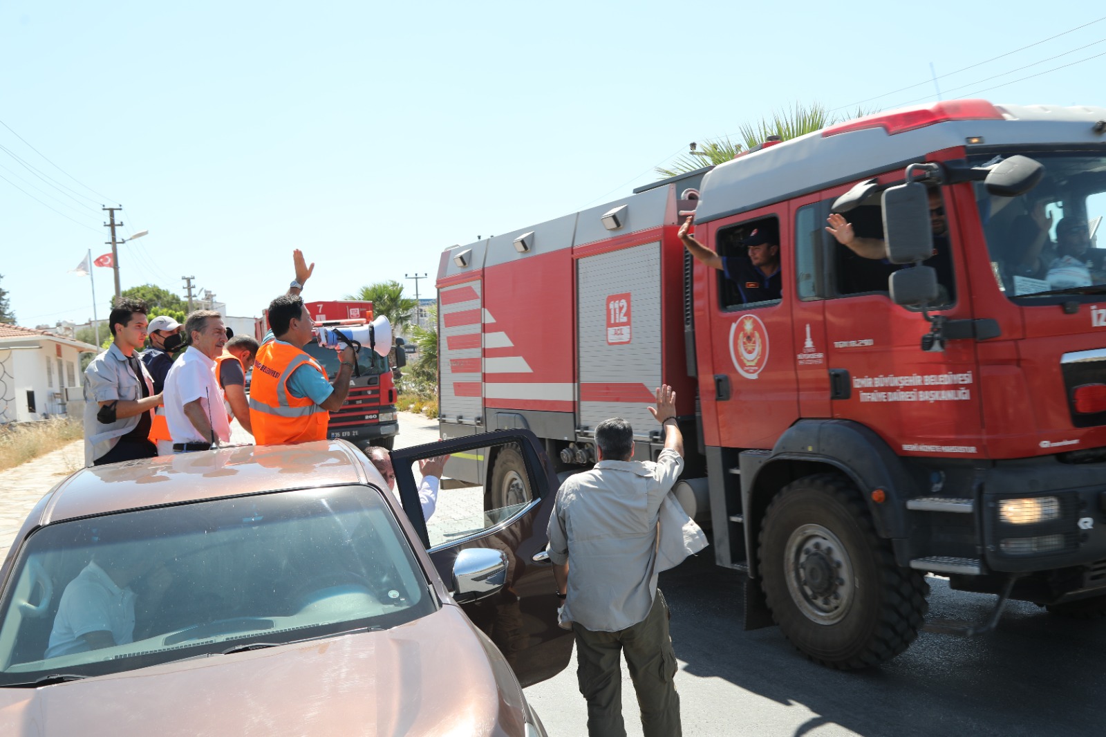 Antalya ve Muğla'daki yangın söndürme çalışmalarına ilk gününden itibaren destek veren İzmir Büyükşehir Belediyesi'nin İtfaiye Dairesi Başkanlığı personeli, Bodrum'dan alkışlarla uğurlandı.