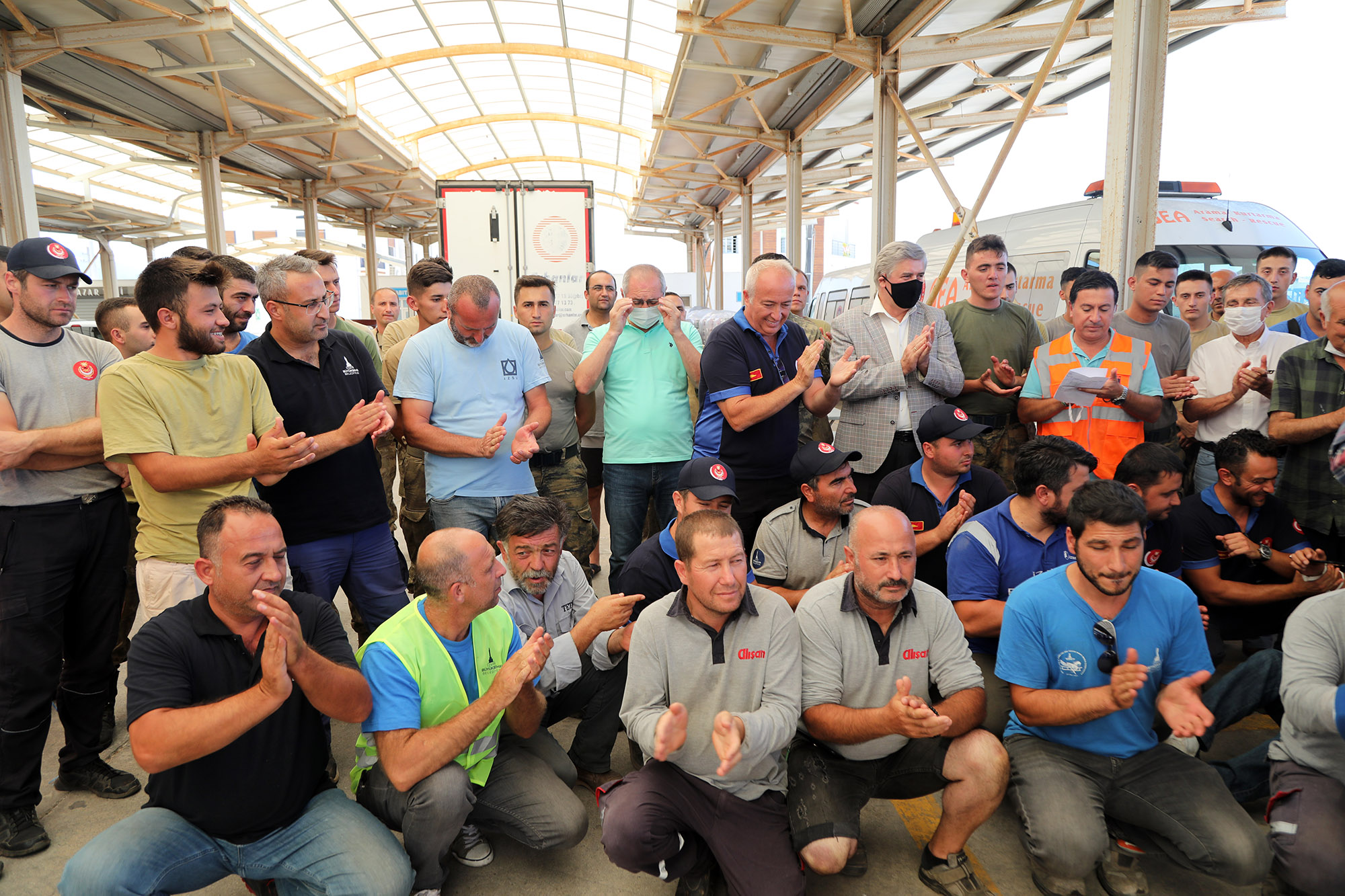 İzmir Büyükşehir Belediye Başkanı Tunç Soyer’in dayanışma anlayışı kapsamında Antalya ve Muğla'da yangın söndürme çalışmalarına katılan İzmir İtfaiyesi Dairesi Başkanlığı ekipleri İzmir'e alkışlarla uğurlandı. İzmir’de de alkışlarla karşılanan ekipler göz yaşlarını tutamadı.