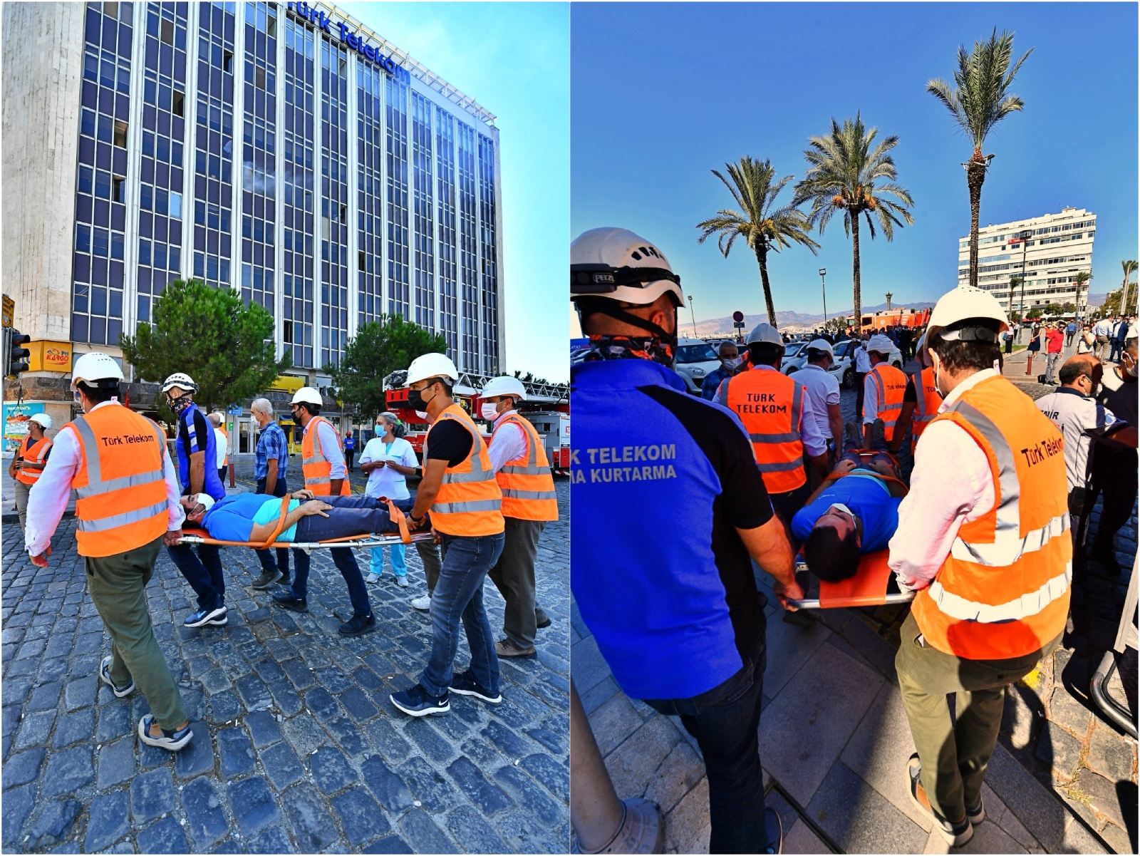 İzmir Büyükşehir Belediyesi İtfaiye Dairesi Başkanlığı, 27 Eylül- 3 Ekim tarihleri arasında kutlanan İtfaiye Haftası etkinlikleri kapsamında, Türk Telekom İl Müdürlüğü ile ortak yangın tatbikatı düzenledi. Tatbikat kapsamında Türk Telekom binasının dördüncü katındaki çay ocağında çıkan yangına; merkez gruptan iki arazöz, bir merdivenli araç, bir AKS 110 kurtarma aracının yanı sıra 2'si paramedik olmak üzere 14 itfaiye personeliyle müdahale edildi. Ekipler, panik halinde çatıya çıkan bir kişiyi, sedyeye alarak serbest iniş tekniğiyle kurtardı. Yine çay ocağında mahsur kalan bir yaralı ekipler tarafından başarılı bir operasyonla kurtarıldı. Daha sonra yangın, kısa sürede itfaiyeciler tarafından kontrol altına alındı.