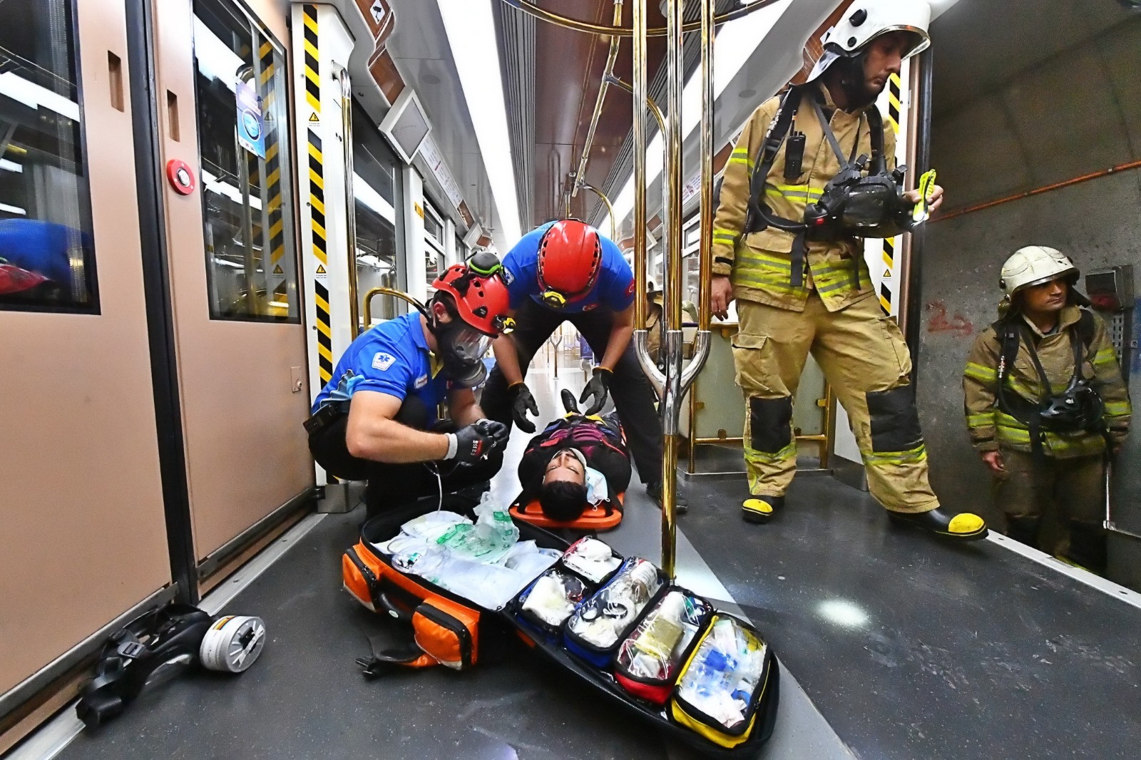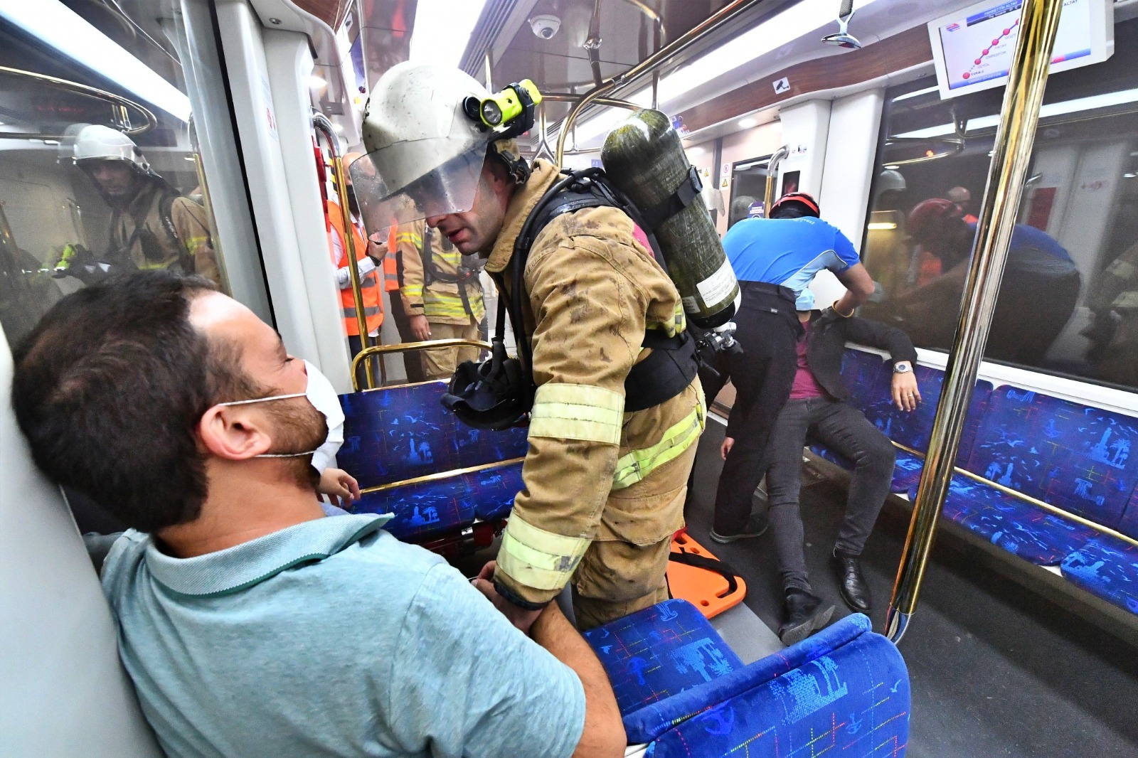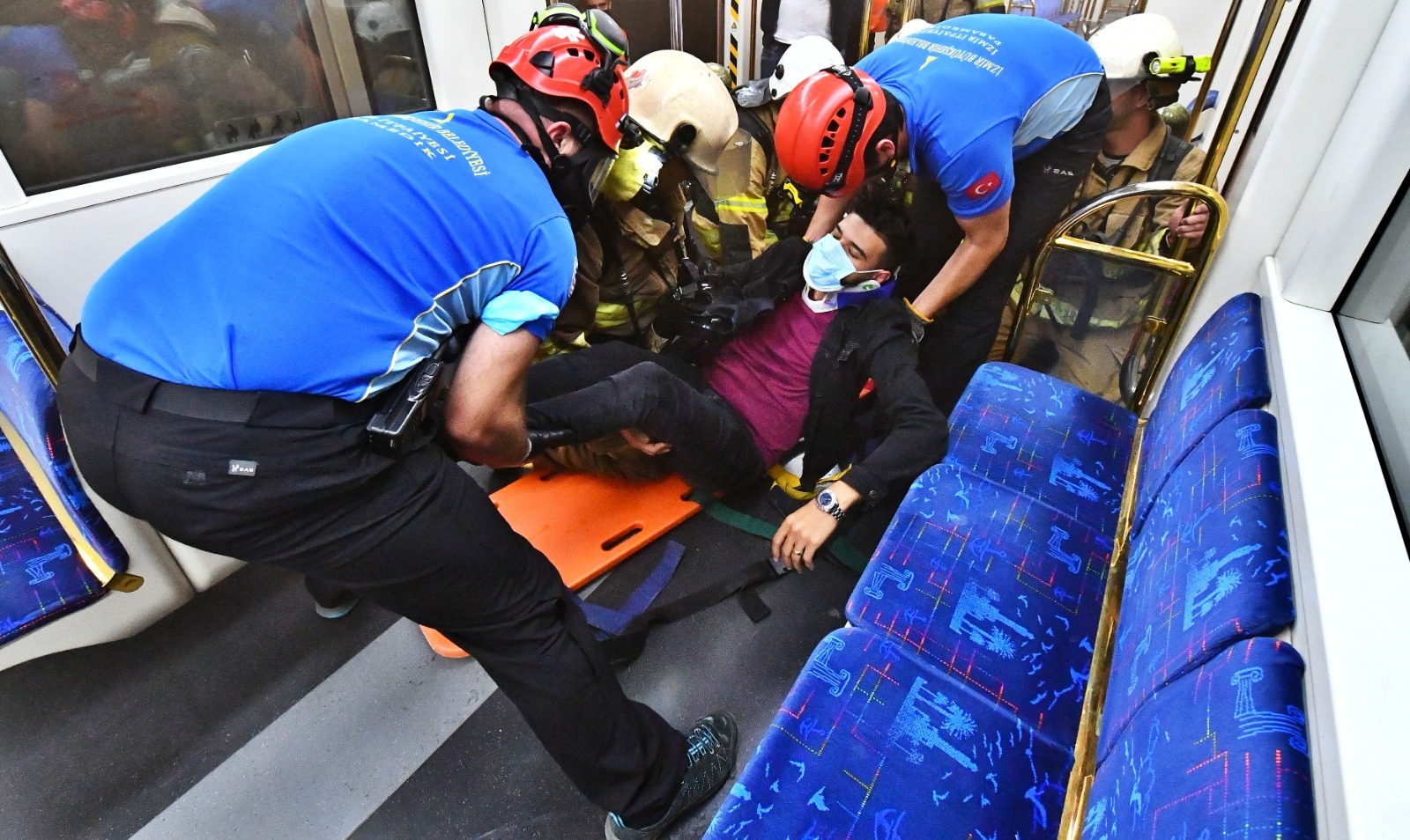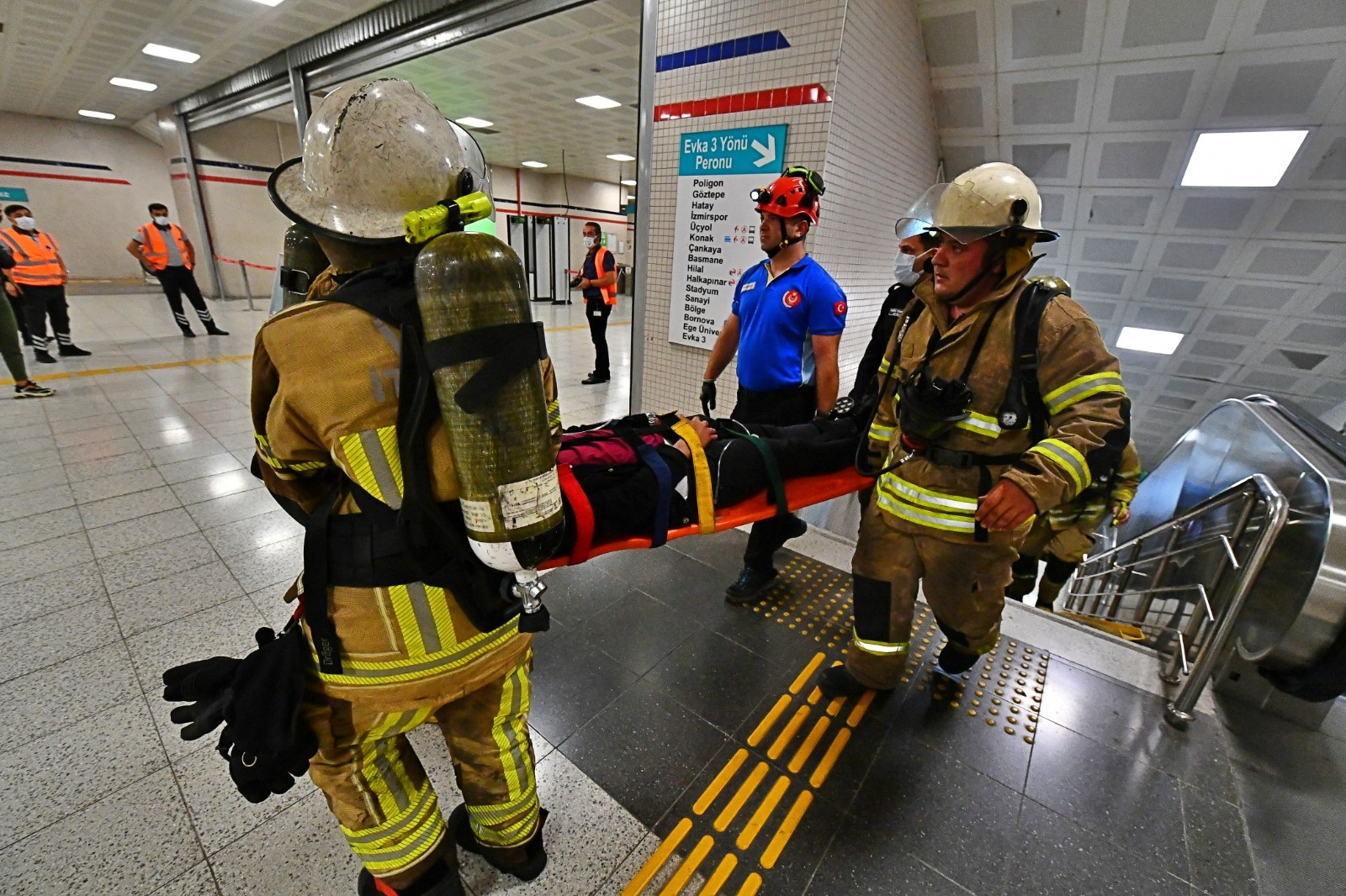 Görevli personel bu süre içinde alması gereken önlemleri hayata geçirdi; metronun elektrik bağlantısını kesti, yolcuları teker teker vagondan indirdi. Personelin yangına müdahalesi sürerken Merkez Bölge, Hatay ve Fahrettin Altay itfaiye gruplarından itfaiyeciler tam donanımlı yangın arazözü, arama kurtarma aracı ve AKS 112 ile 3 dakika gibi kısa sürede olay yerine gelerek yangının söndürülmesini sağladı. Trende bulunan senaryo gereği yaralanmış iki kişi de paramediklerin ilk müdahalesinin ardından kurtarıldı.