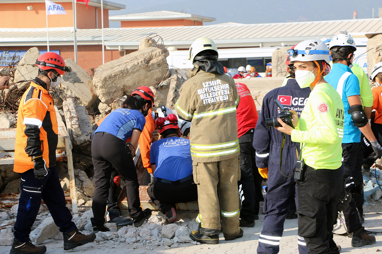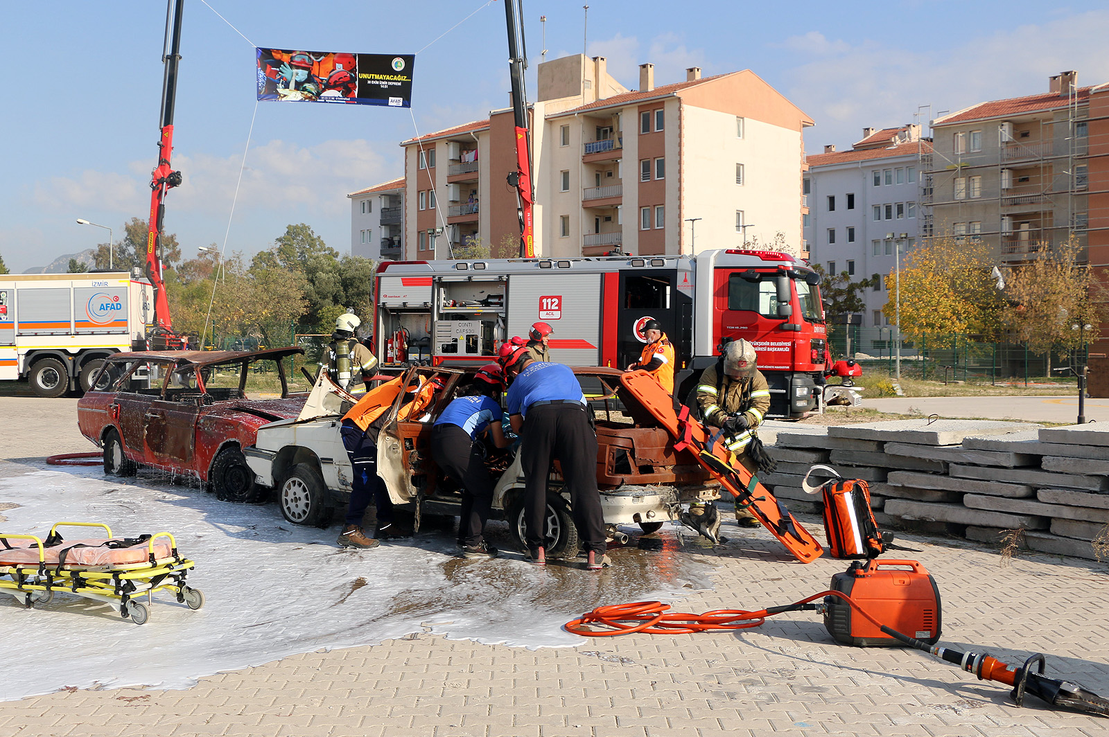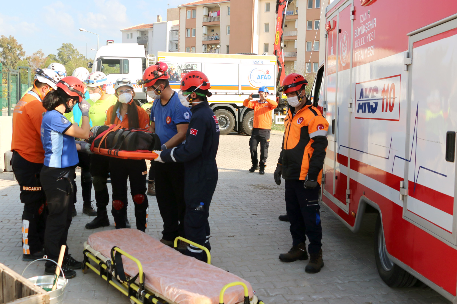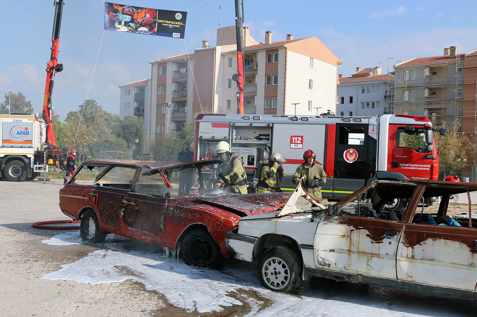 Program kapsamında yapılan deprem tatbikatına, İzmir İtfaiye’si ile AFAD’ın davet etmiş olduğu Sivil Toplum Kuruluşlarının Arama–Kurtarma ekipleri katıldı. 1 arazöz ve 1 aks aracı ile tatbikata katılan İzmir Büyükşehir İtfaiyesi araç yangınına müdahale ve enkazdan yaralı çıkarma operasyonlarını gerçekleştirdi.