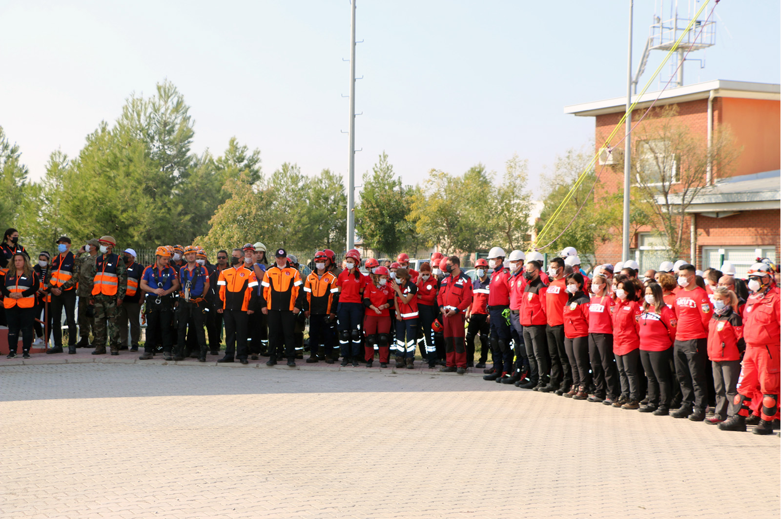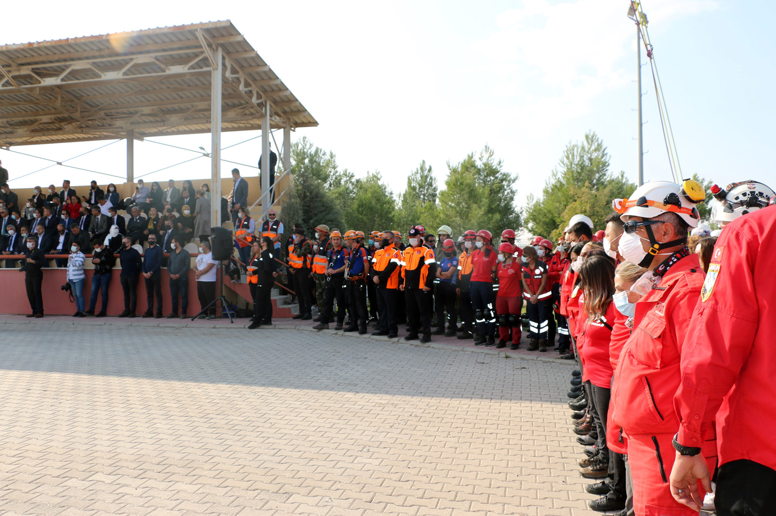 Köşger'in konuşmasının ardından deprem tatbikatına geçildi. Kurtarma ekipleri senaryo gereği enkaz altında kalanlar için özel eğitimli köpeklerle arama kurtarma çalışması yaptı.