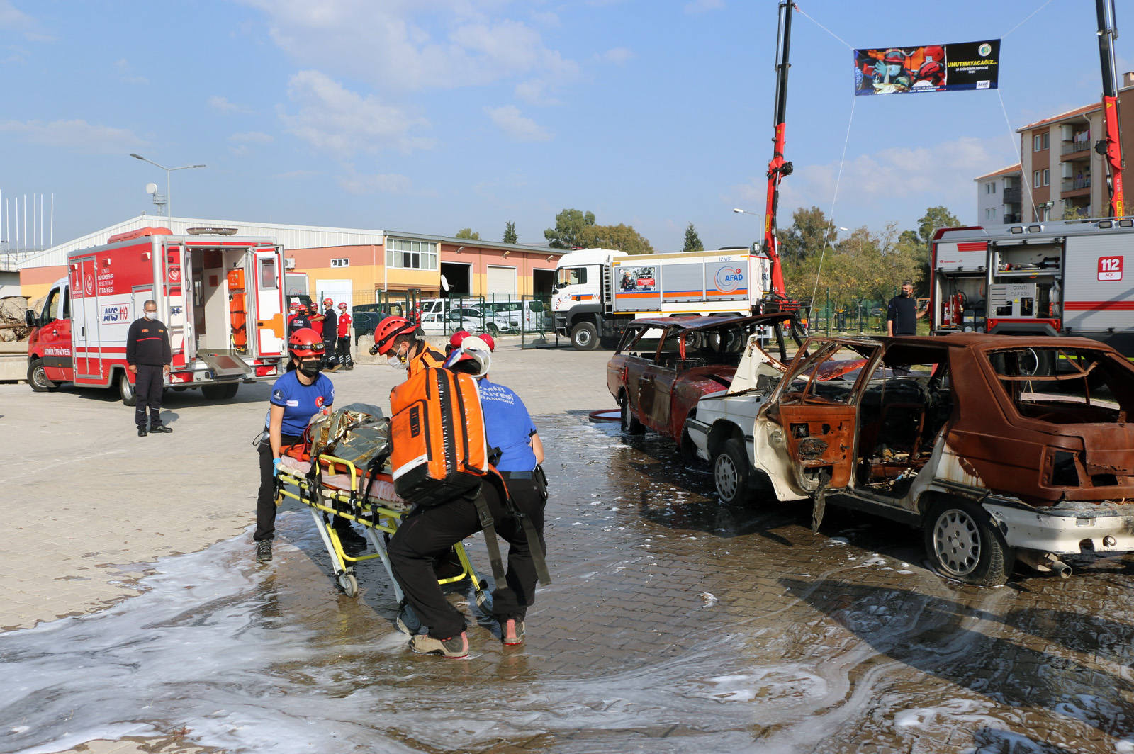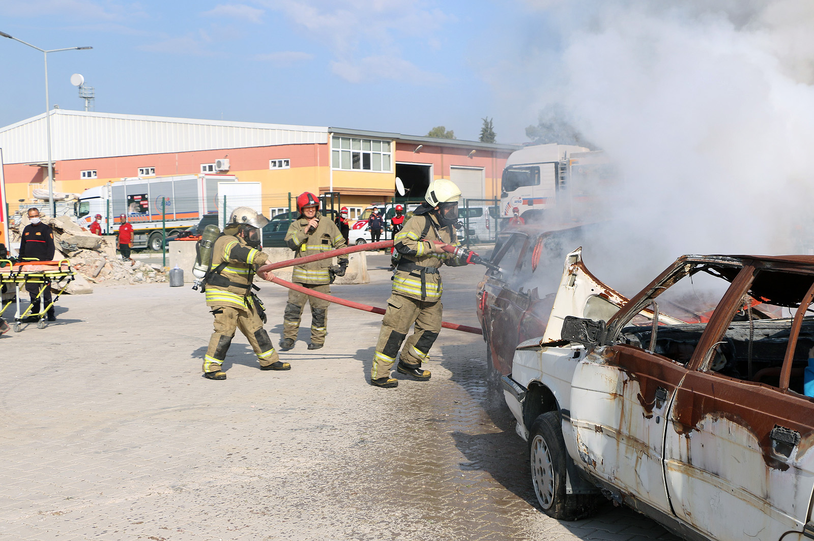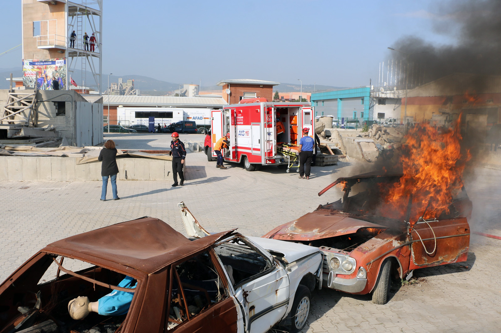 Ekipler, çıkarılan yangınlara da müdahale ederken, yaralanan vatandaşlar temsili olarak kurtarıldı.