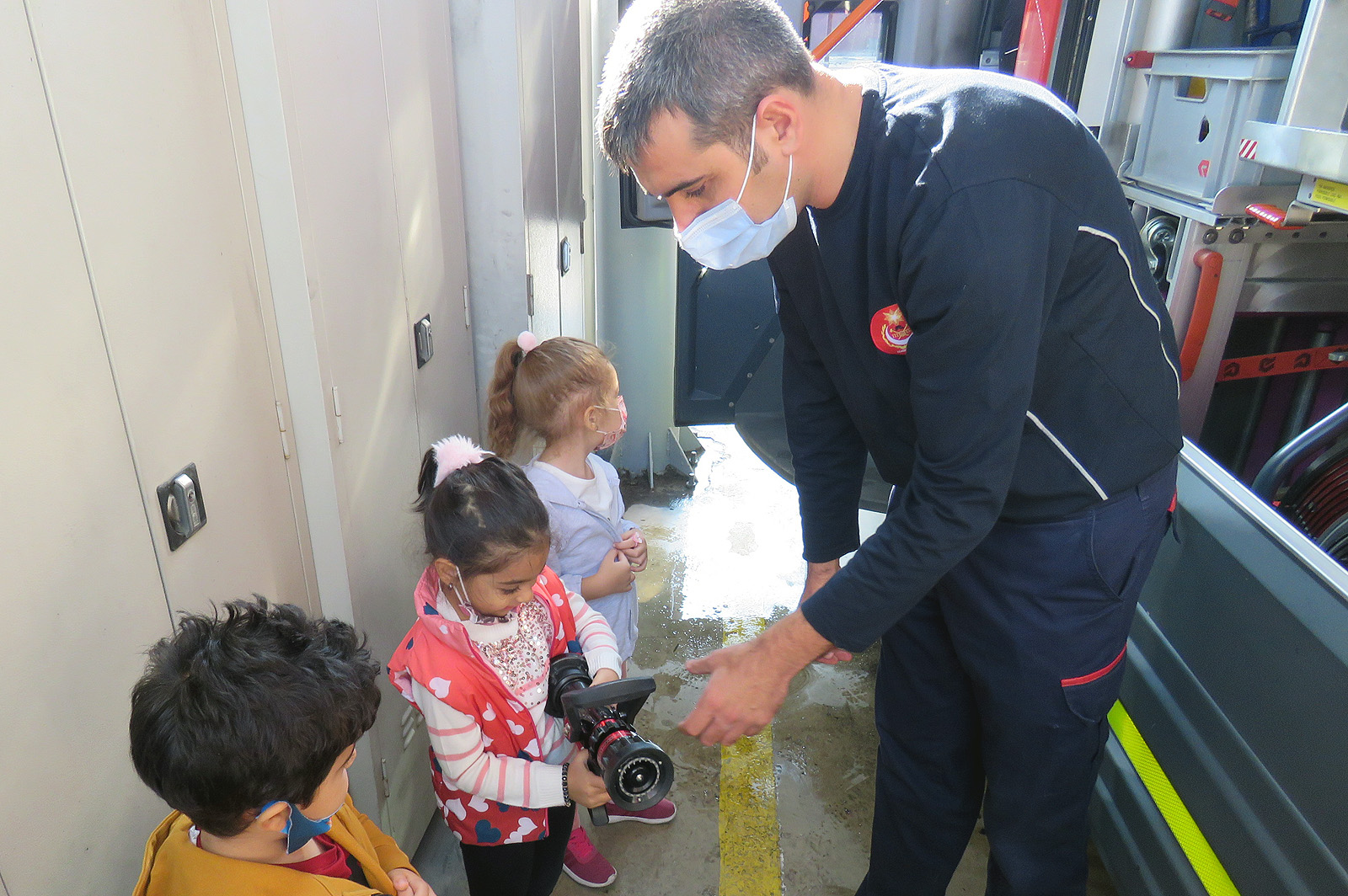 Özellikle itfaiyecilerin canlıların hayatlarını kurtarmak için kullandıkları araç, gereç ve giysilerle çok ilgilendiler. Meraklı sorular soran ve heyecanlı olan çocuklara bilgilendirmeyi, İtfaiye Erleri Serdar Bıçakçı, Çağdaş Kantos ve Uğur Taşar yaptılar.