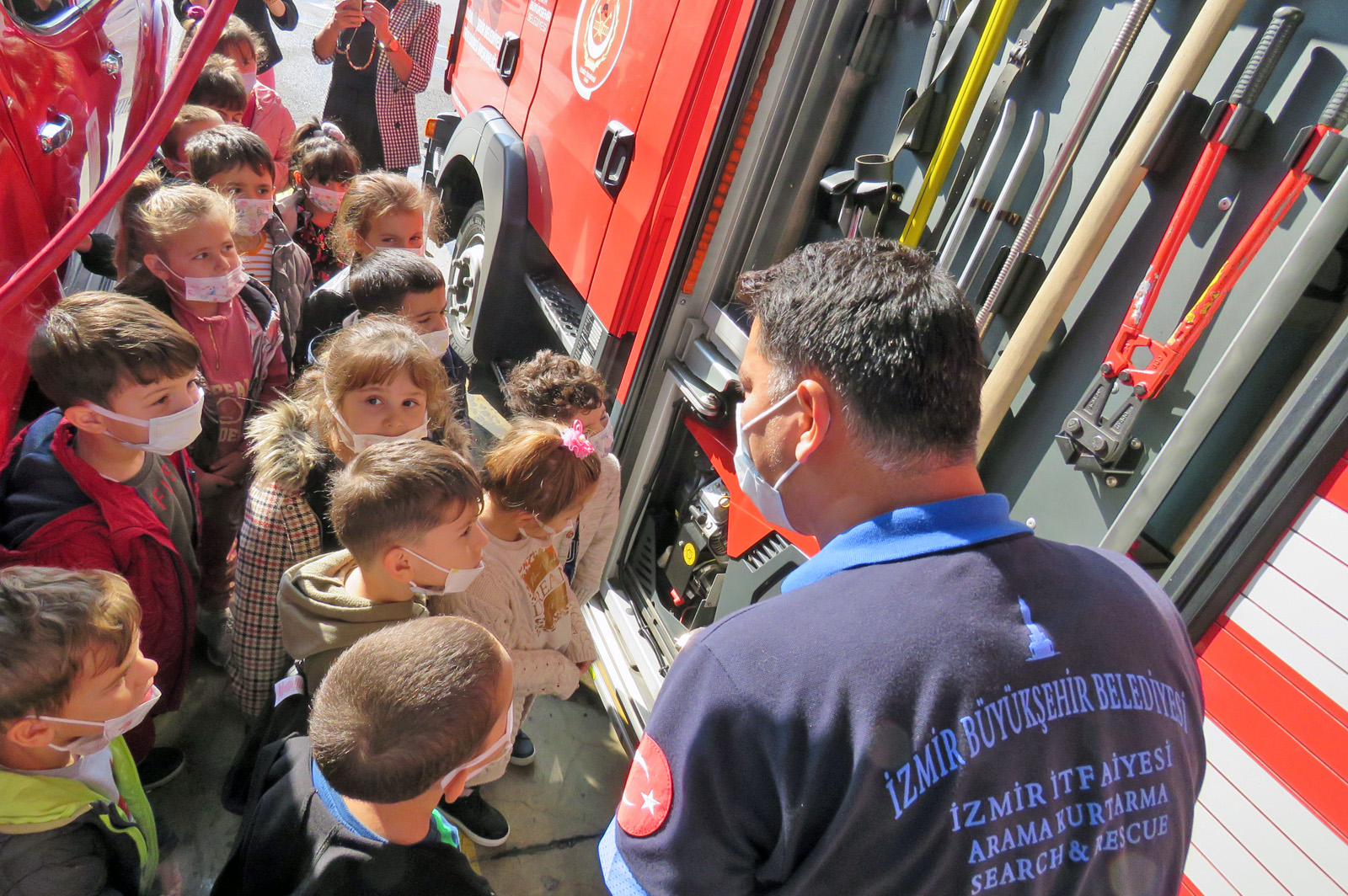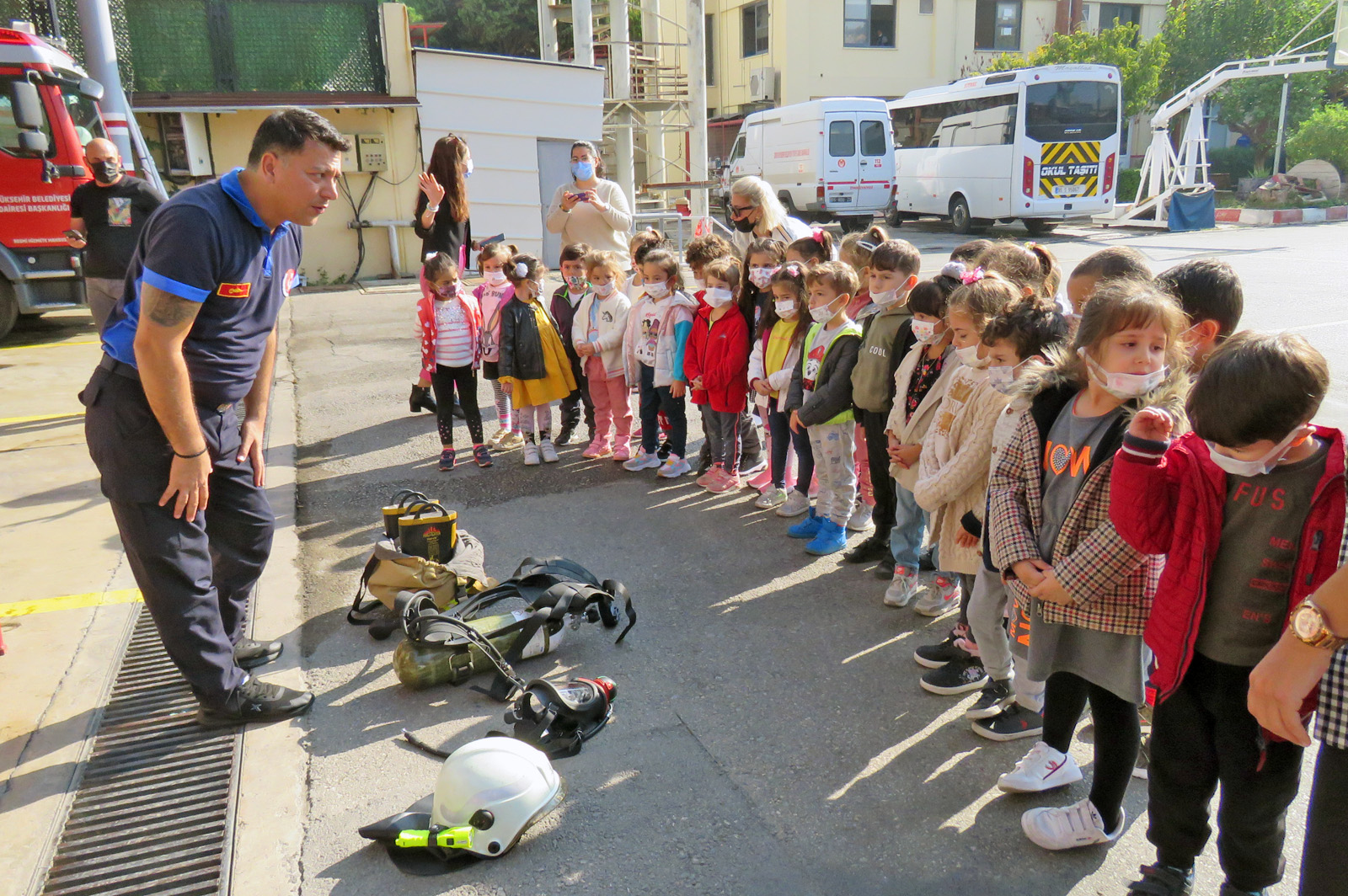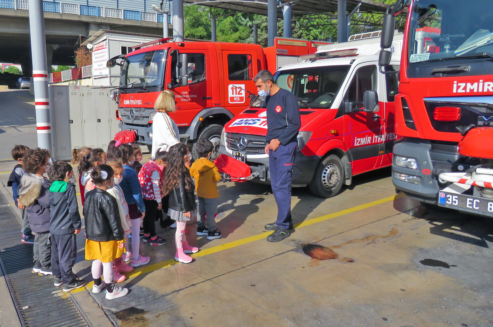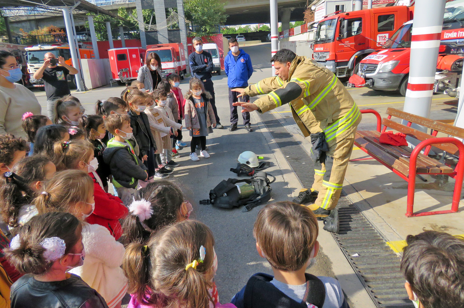 Bayraklı Ege Güneşi Anaokulu öğrencileri, İzmir Büyükşehir Belediyesi İtfaiye Dairesi Başkanlığı'nın Yenişehir merkezini ziyaret ettiler.