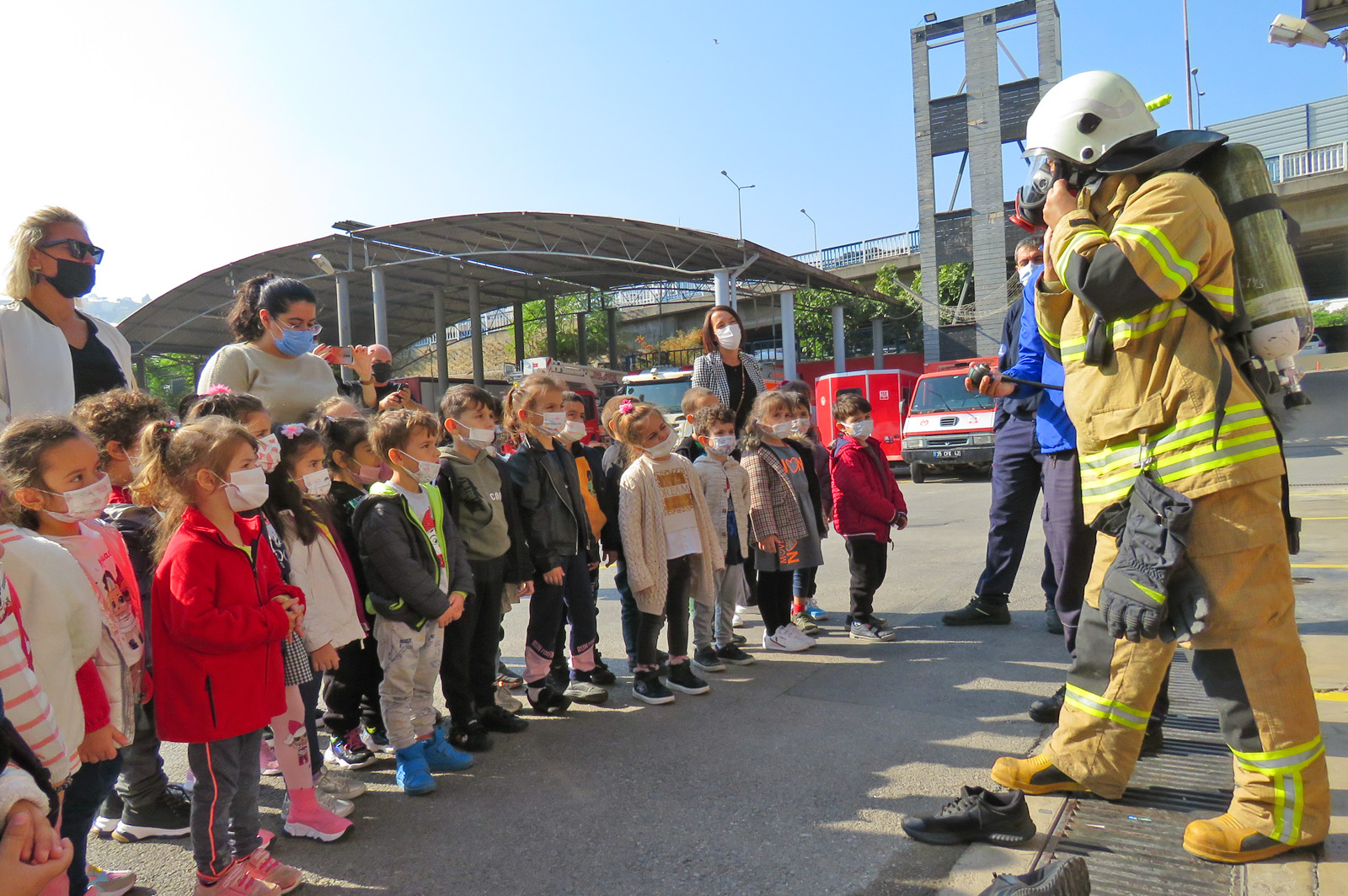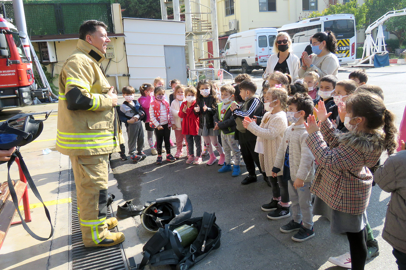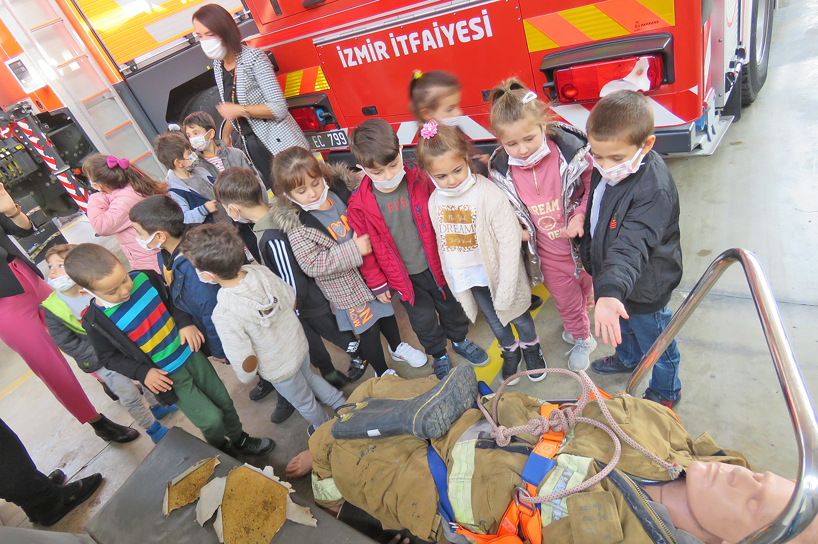 Bayraklı Ege Güneşi Anaokulu öğrencileri, İzmir Büyükşehir Belediyesi İtfaiye Dairesi Başkanlığı'nın Yenişehir merkezini ziyaret ettiler.