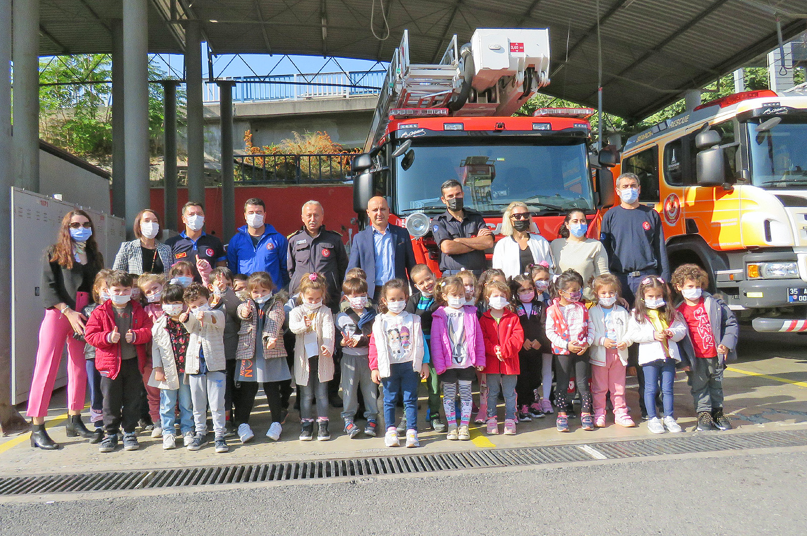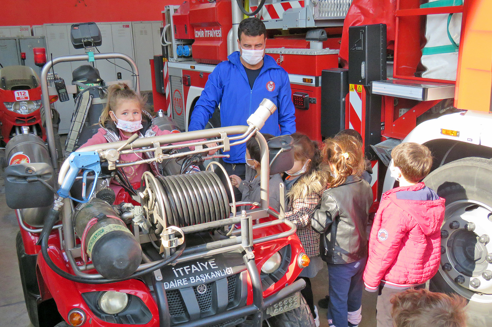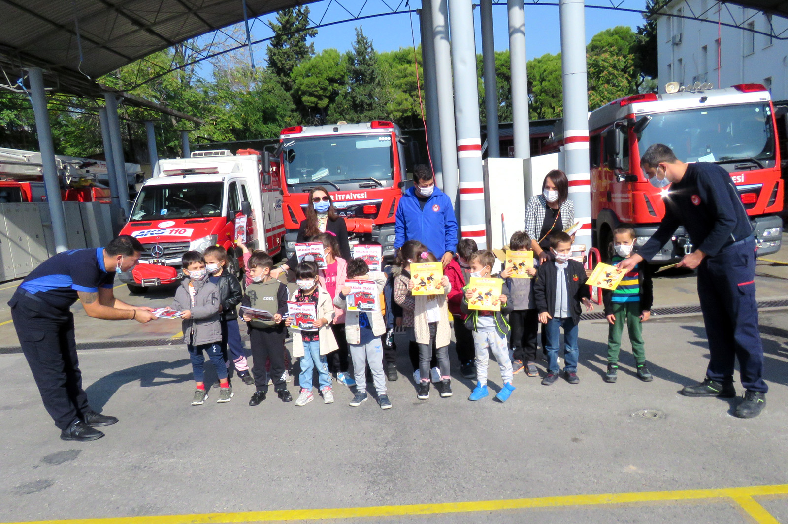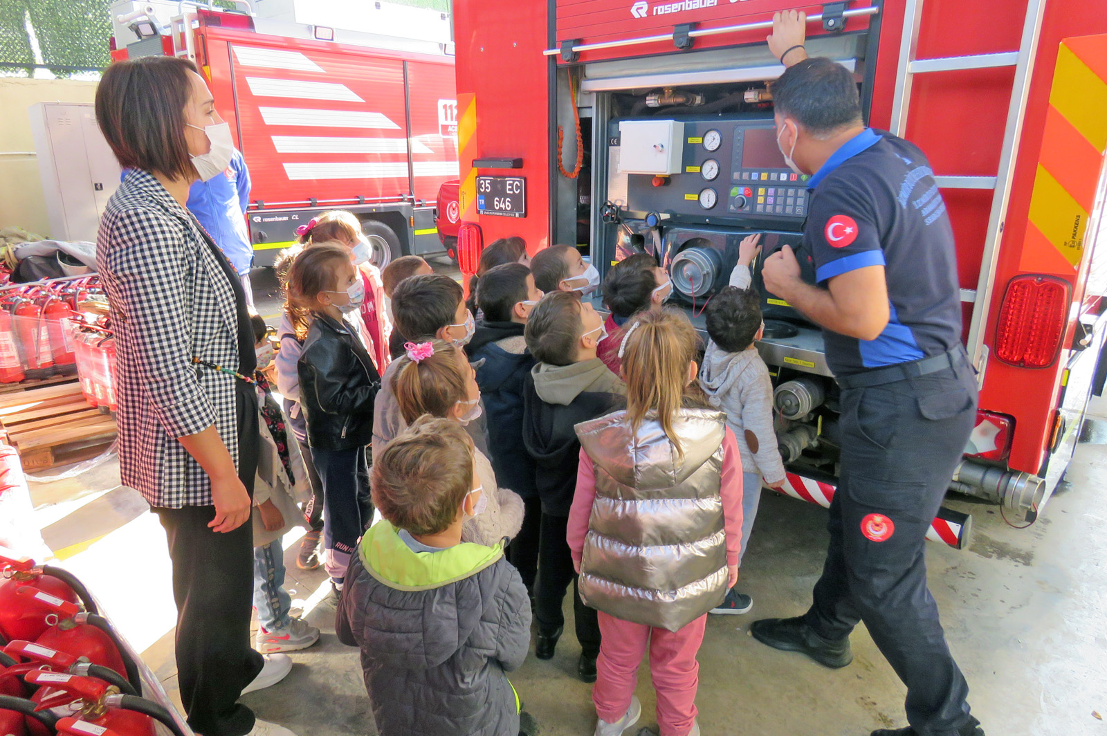 Bayraklı Ege Güneşi Anaokulu öğrencileri, İzmir Büyükşehir Belediyesi İtfaiye Dairesi Başkanlığı'nın Yenişehir merkezini ziyaret ettiler.