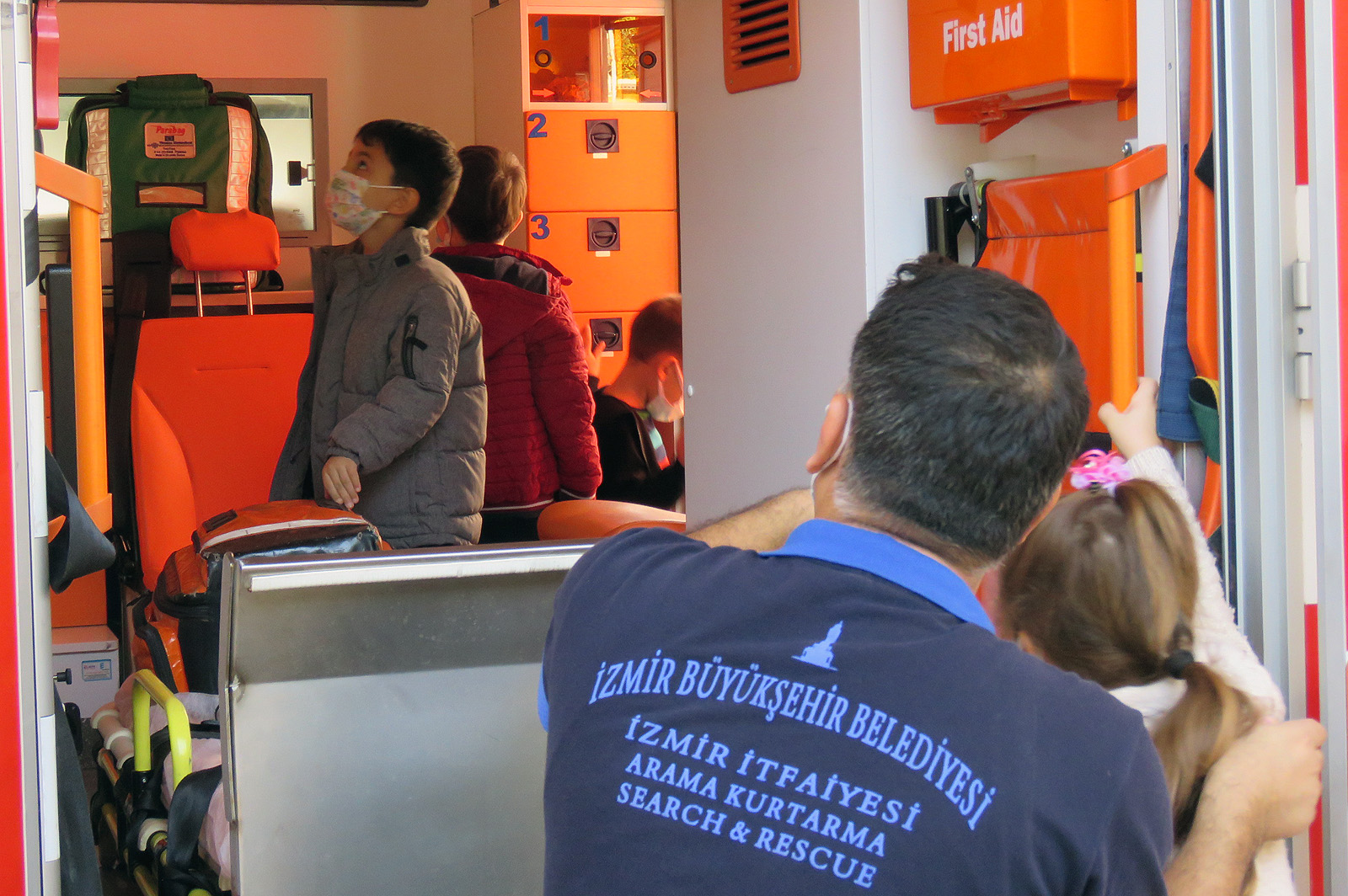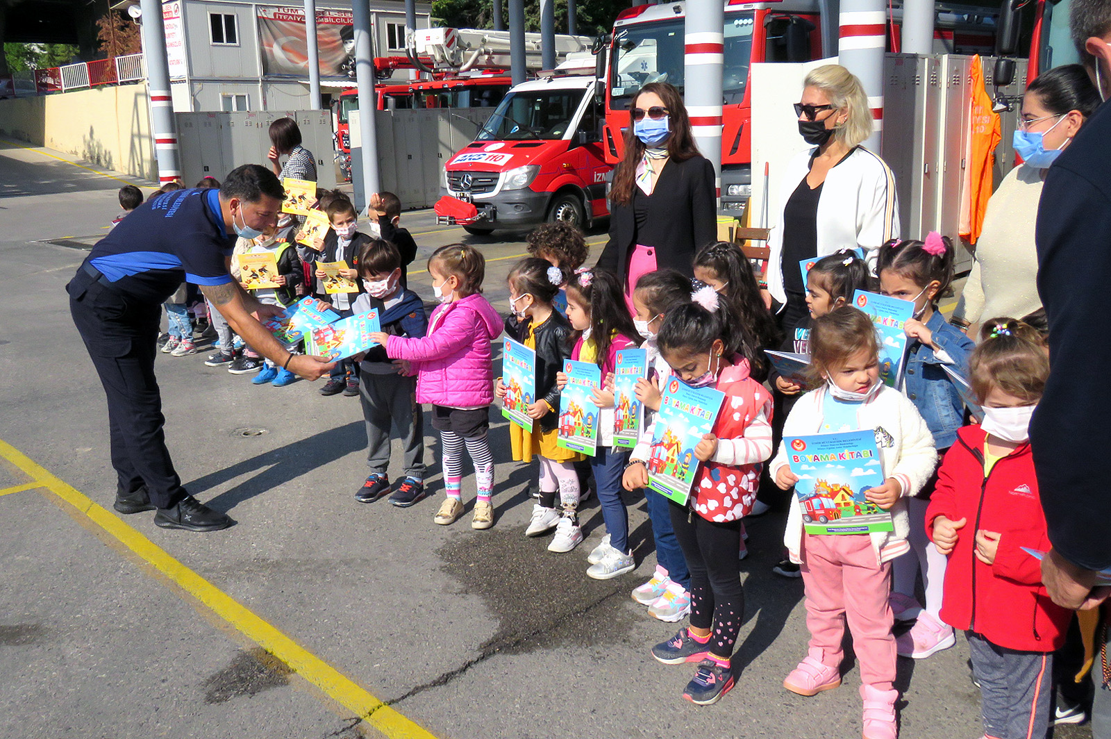 İtfaiyeci giysilerinin özelliklerini ve nasıl giyildiğini uygulamalı olarak gören çocuklara, İzmir Büyükşehir Belediyesi İtfaiye Dairesi Başkanlığının, çocuklar için hazırlamış olduğu, çocuklara yönelik ilk yardım konularında bilgilendirici ve eğitici "Arkadaşım İtfaiyeci", "Kahraman İtfaiyeciler" ve boyama kitapları hediye edildi.