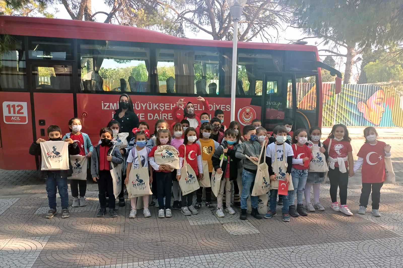 İzmir Büyükşehir Belediyesi İtfaiye Dairesi ve Kültür Sanat Dairesi Başkanlıkları 29 Ekim’de çocukları İstiklal Sergisine götürdüler.