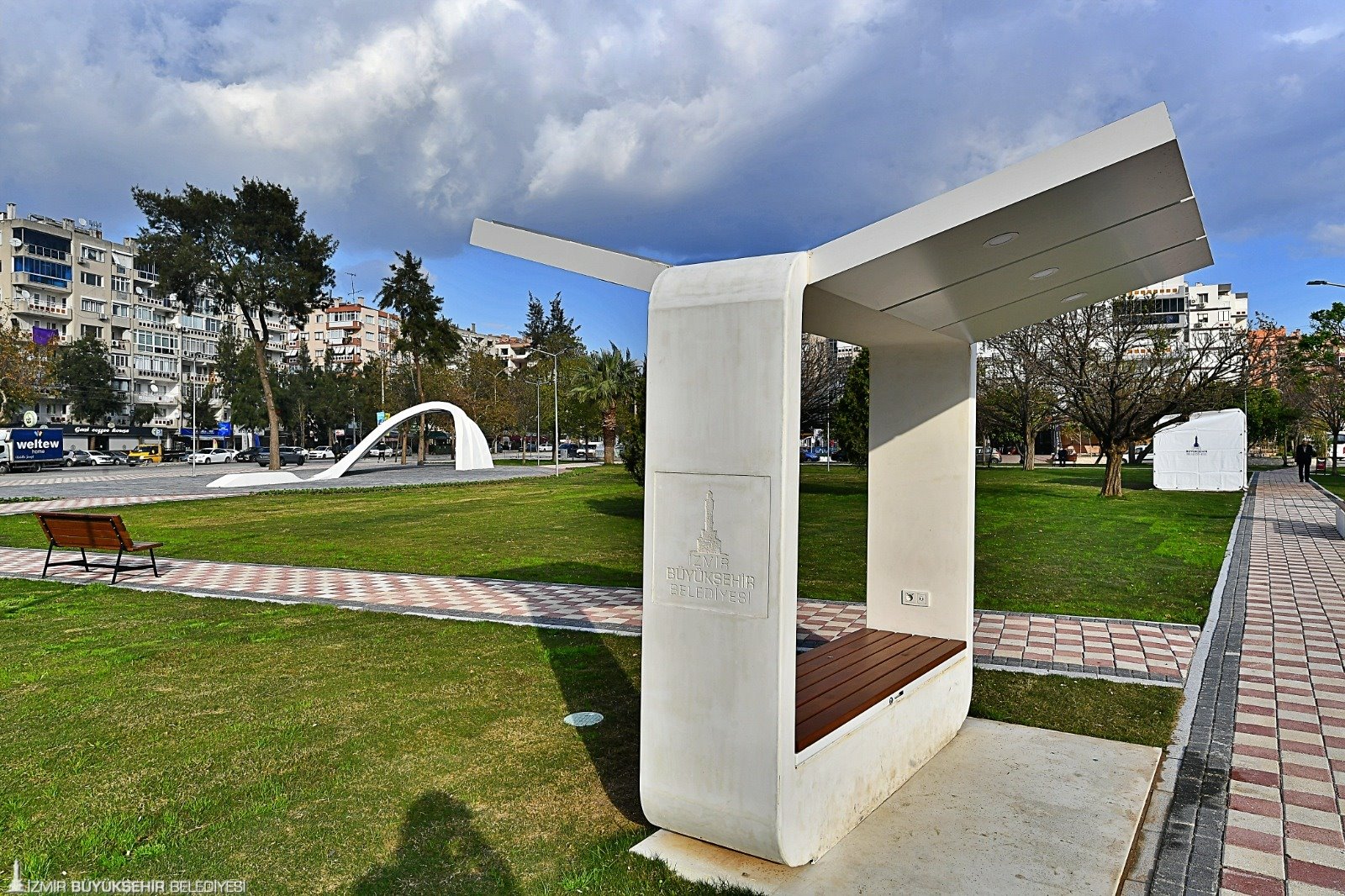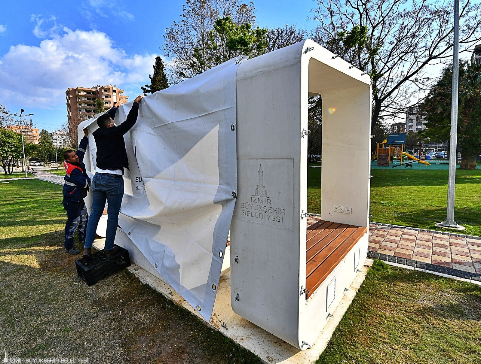 İzmir Büyükşehir Belediye Başkanı Tunç Soyer'in afetlere karşı dirençli kent inşa etme vizyonu doğrultusunda çalışmalarını sürdüren İzmir Büyükşehir Belediyesi, parklardaki kent mobilyalarını afet durumlarında halkın barınma, enerji ve temel ihtiyaçlarını karşılayacak şekilde yenilemeye başladı.